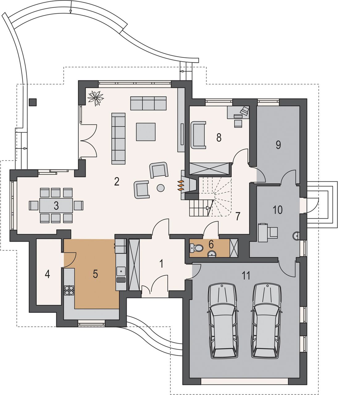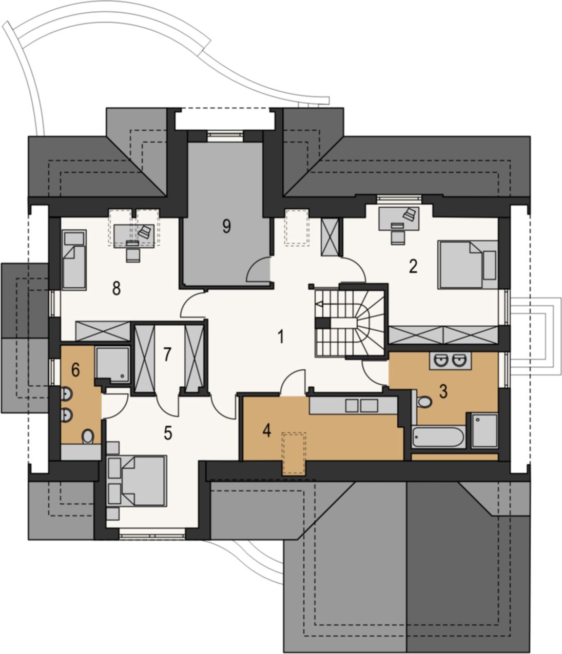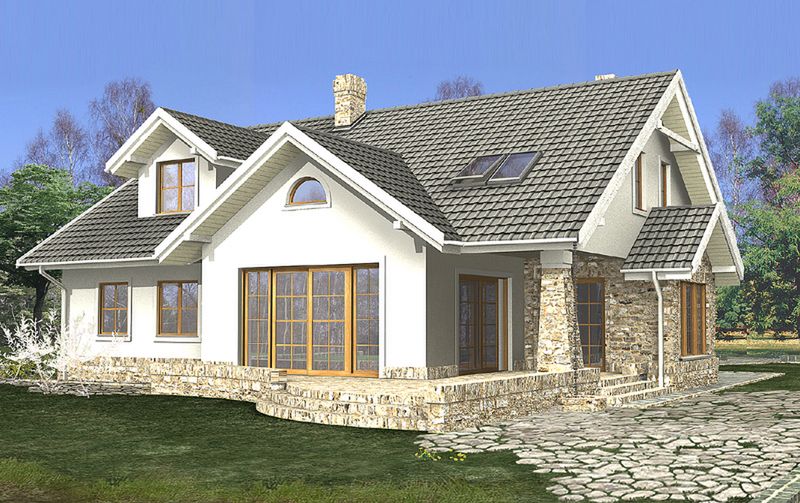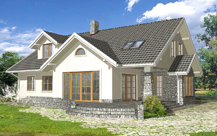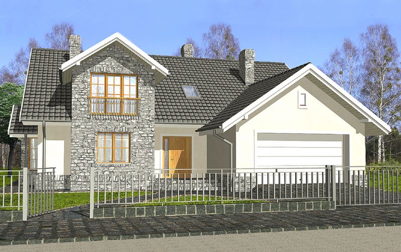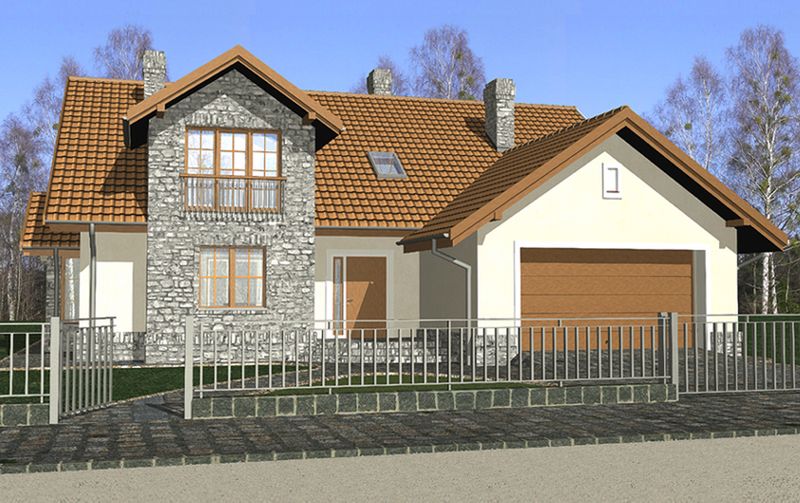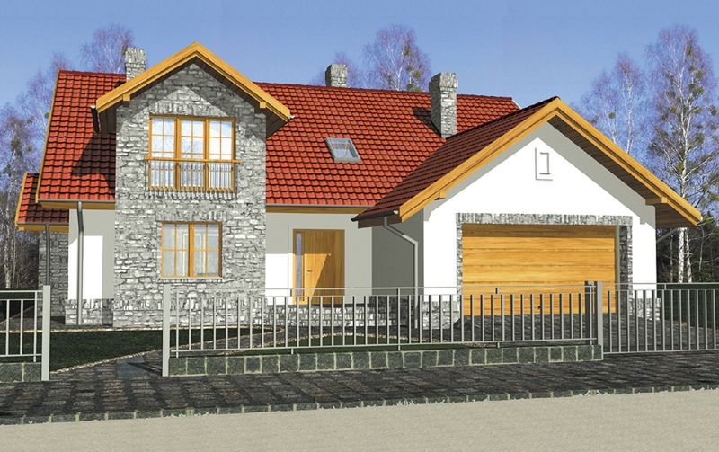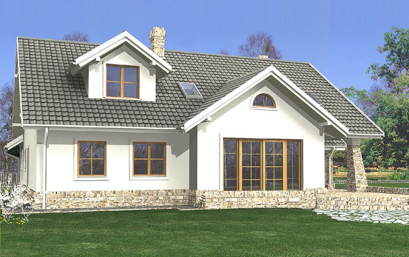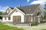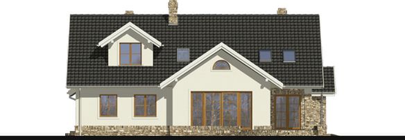 Graficzne opracowanie rzutów poglądowych widocznych na karcie projektu zostało wykonane przez Extradom.pl. Prezentowane przez Extradom.pl wizualizacje wykonane zostały przez autora projektu i należy poczytywać je jedynie za przykład i propozycję wykończenia, wizję architektoniczną autora projektu. Ostateczne wykończenie budynku może nastąpić na wiele sposobów. Szczegółowe rozwiązania zastosowane w oferowanej dokumentacji - w tym również ilość, lokalizacje i wygląd okien, drzwi, kominów - mogą w niewielkim stopniu różnić się od prezentowanej wizualizacji budynku.