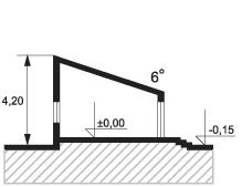 Ściany dwuwarstwowe z pustaków ceramicznych + izolacja termiczna. Dach jednospadowy. Strop belkowy drewniany.