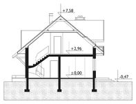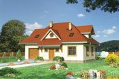 Graficzne opracowanie rzutów poglądowych widocznych na karcie projektu zostało wykonane przez Extradom.pl. Prezentowane przez Extradom.pl wizualizacje wykonane zostały przez autora projektu i należy poczytywać je jedynie za przykład i propozycję wykończenia, wizję architektoniczną autora projektu. Ostateczne wykończenie budynku może nastąpić na wiele sposobów. Szczegółowe rozwiązania zastosowane w oferowanej dokumentacji - w tym również ilość, lokalizacje i wygląd okien, drzwi, kominów - mogą w niewielkim stopniu różnić się od prezentowanej wizualizacji budynku.