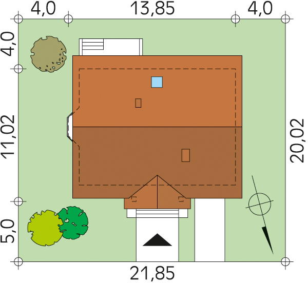 Dach: dachówka, kąt nachylenia 45°. Stropy: żelbetowe, wylewane. Ściany: 2-warstwowe - pustak ceramiczny + styropian.