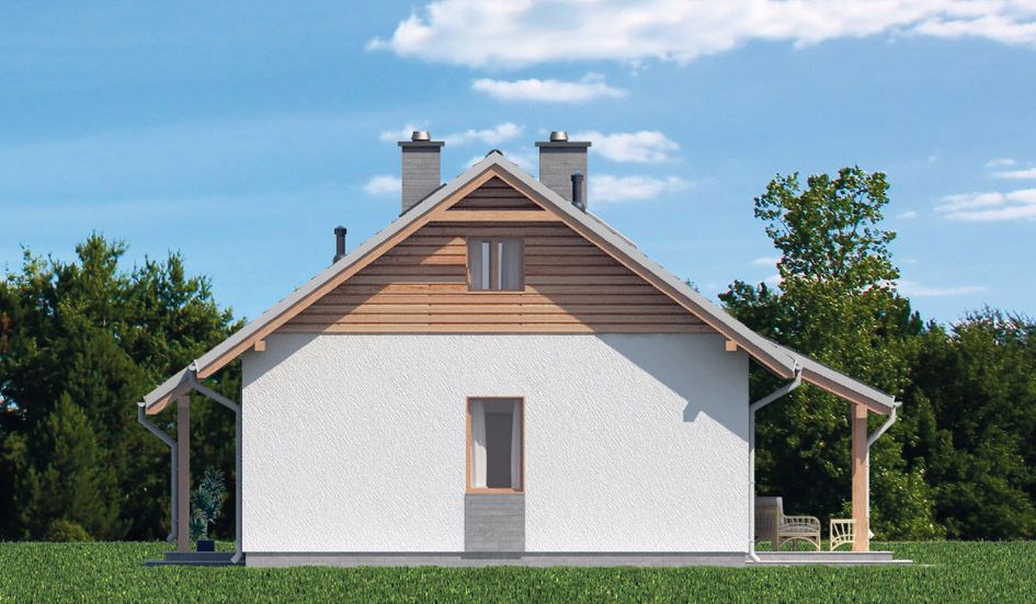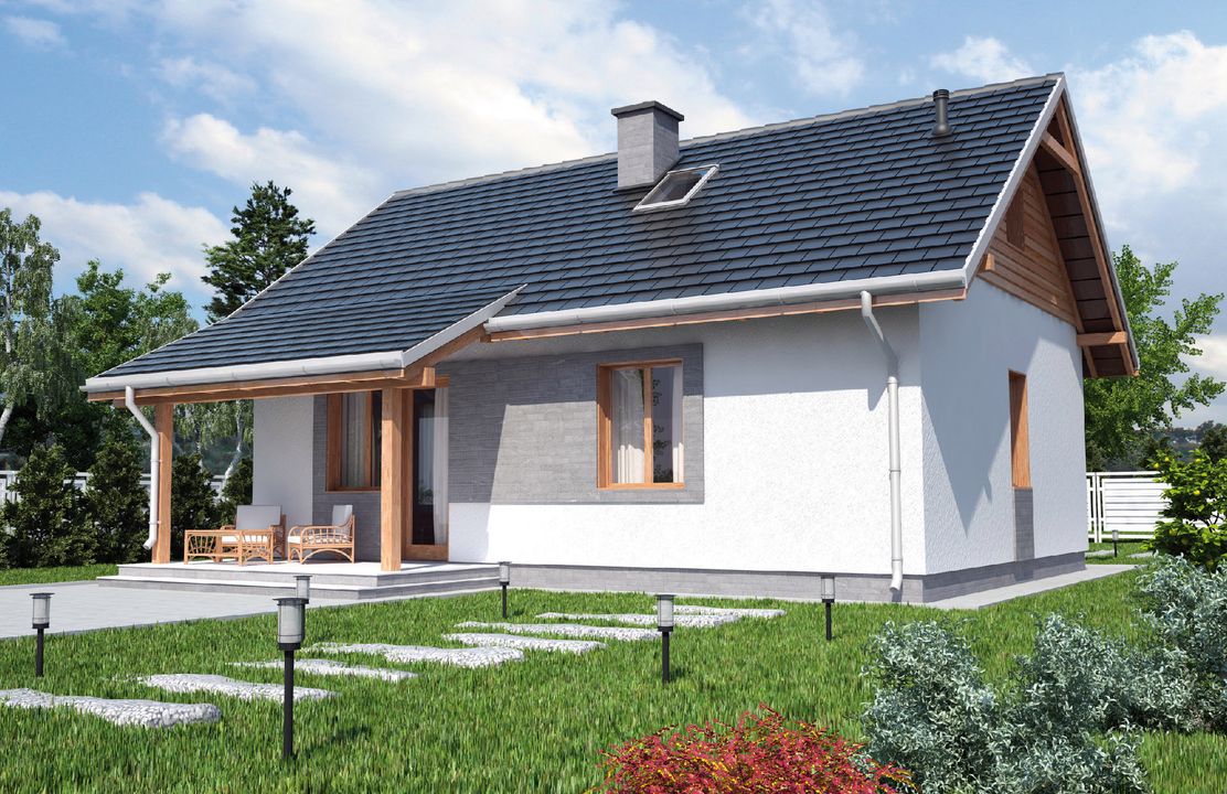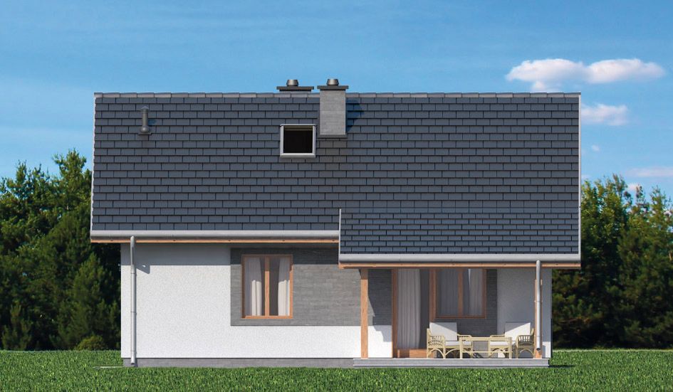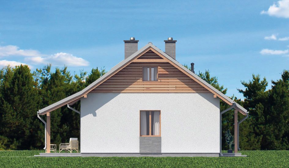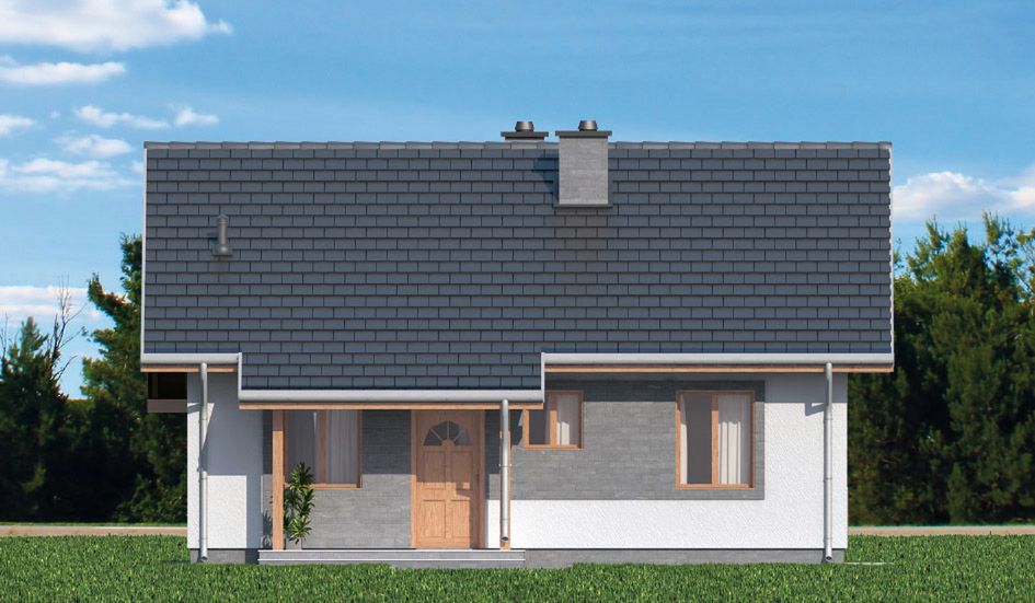 Graficzne opracowanie rzutów poglądowych widocznych na karcie projektu zostało wykonane przez Extradom.pl. Prezentowane przez Extradom.pl wizualizacje wykonane zostały przez autora projektu i należy poczytywać je jedynie za przykład i propozycję wykończenia, wizję architektoniczną autora projektu. Ostateczne wykończenie budynku może nastąpić na wiele sposobów. Szczegółowe rozwiązania zastosowane w oferowanej dokumentacji - w tym również ilość, lokalizacje i wygląd okien, drzwi, kominów - mogą w niewielkim stopniu różnić się od prezentowanej wizualizacji budynku.