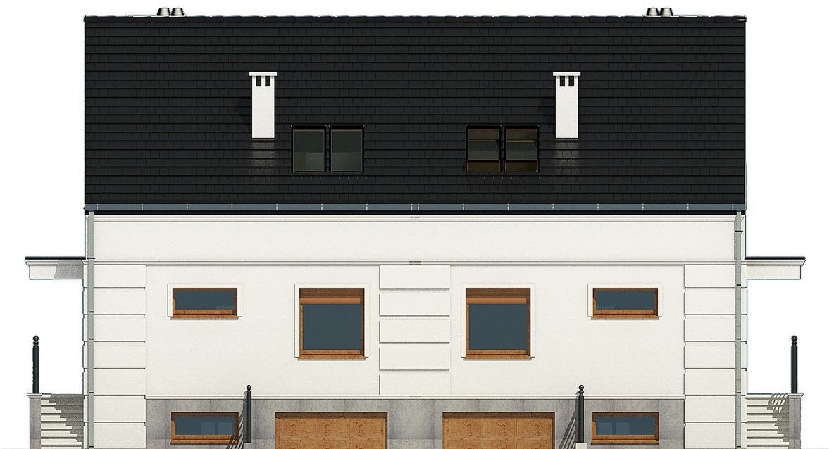 Projekt wymaga aktualizacji. Przy zakupie projektu należy zapłacić 50% zaliczki. Zaliczka jest bezzwrotna w przypadku zwrotu lub rezygnacji z zamówienia. Budynek dwulokalowy posadowiony na wspólnym fundamencie. Jeśli planujesz budowę na osobnych działkach zamów pojedyncze segmenty: podstawa + lustro.