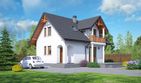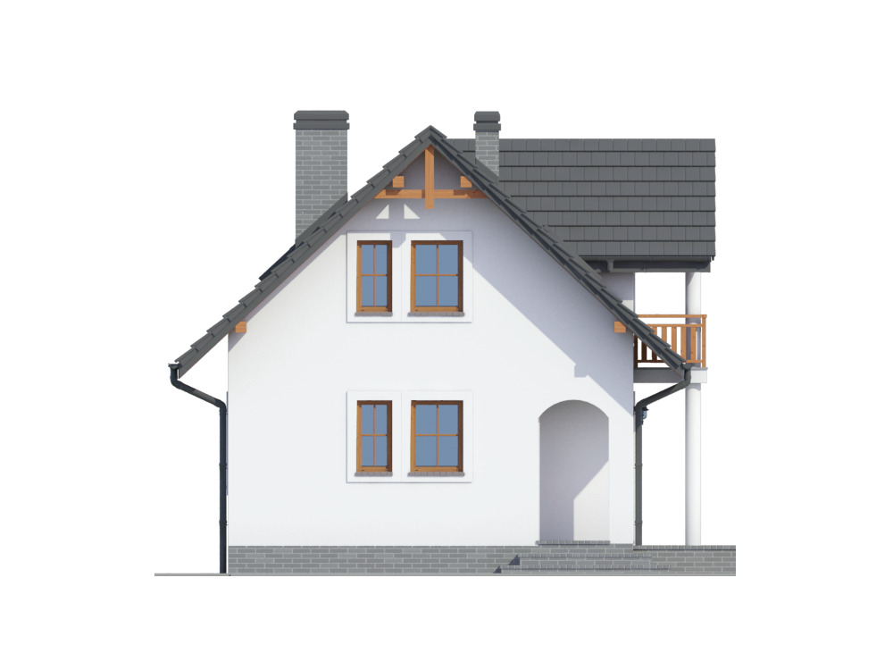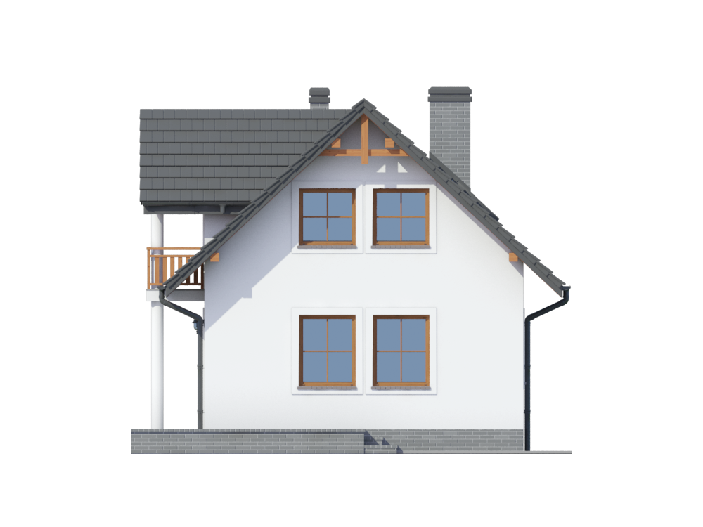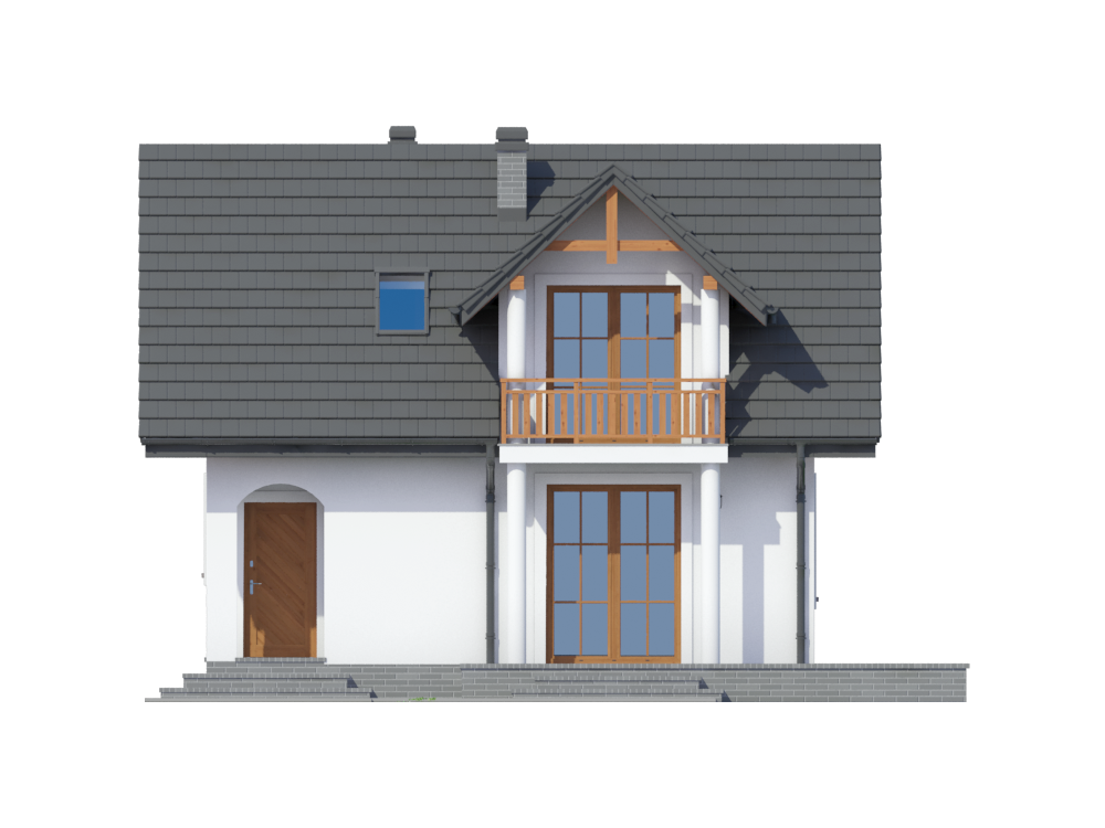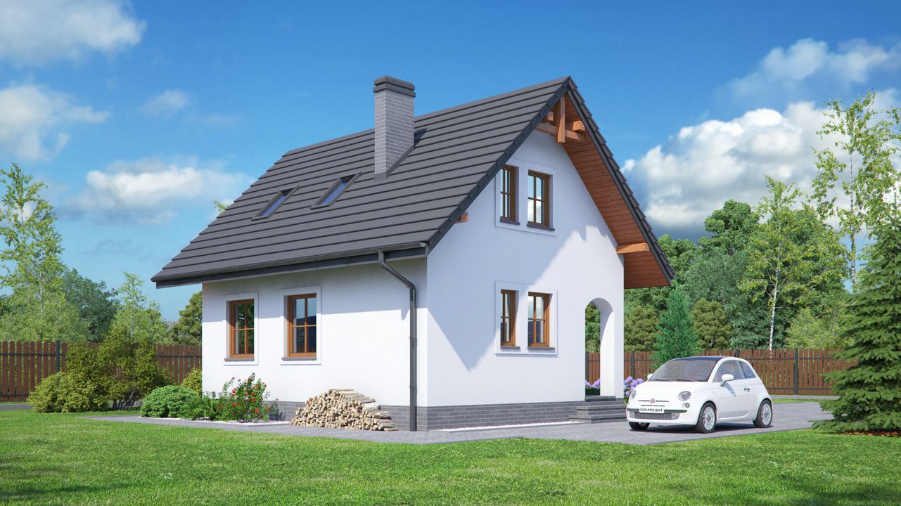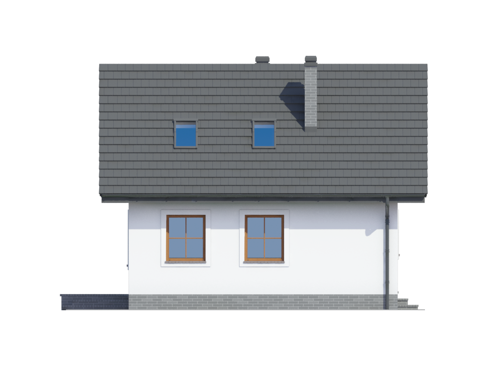 Graficzne opracowanie rzutów poglądowych widocznych na karcie projektu zostało wykonane przez Extradom.pl. Prezentowane przez Extradom.pl wizualizacje wykonane zostały przez autora projektu i należy poczytywać je jedynie za przykład i propozycję wykończenia, wizję architektoniczną autora projektu. Ostateczne wykończenie budynku może nastąpić na wiele sposobów. Szczegółowe rozwiązania zastosowane w oferowanej dokumentacji - w tym również ilość, lokalizacje i wygląd okien, drzwi, kominów - mogą w niewielkim stopniu różnić się od prezentowanej wizualizacji budynku.