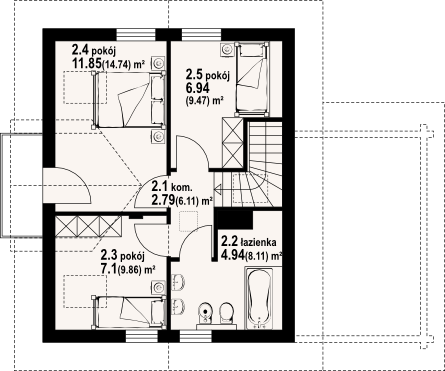 Graficzne opracowanie rzutów poglądowych widocznych na karcie projektu zostało wykonane przez Extradom.pl. Prezentowane przez Extradom.pl wizualizacje wykonane zostały przez autora projektu i należy poczytywać je jedynie za przykład i propozycję wykończenia, wizję architektoniczną autora projektu. Ostateczne wykończenie budynku może nastąpić na wiele sposobów. Szczegółowe rozwiązania zastosowane w oferowanej dokumentacji - w tym również ilość, lokalizacje i wygląd okien, drzwi, kominów - mogą w niewielkim stopniu różnić się od prezentowanej wizualizacji budynku.