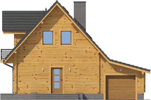 Wysokość ścianki kolankowej: 0.73 m. Strop: drewniany. Pokrycie dachu: dachówka ceramiczna. Ściany zewnętrzne: płazy drewniane + wełna mineralna + deska. Ściany wewnętrzne: płazy drewniane. Typ ogrzewania: kocioł gazowy.