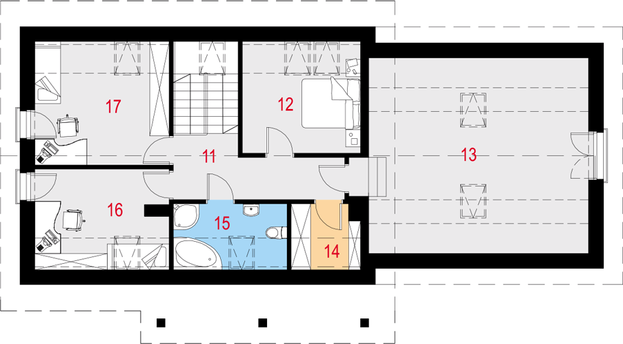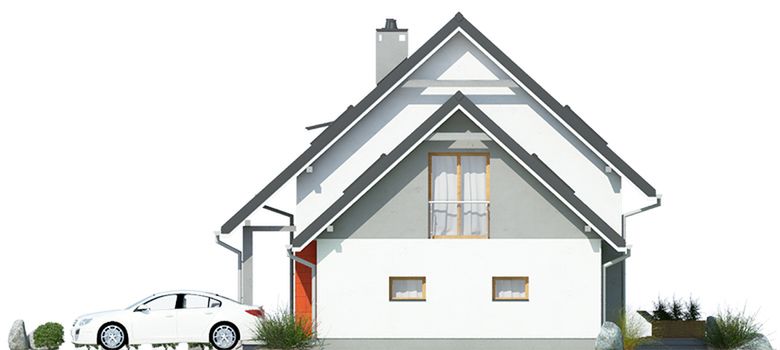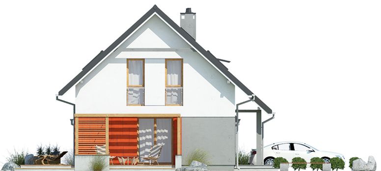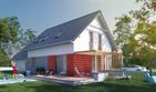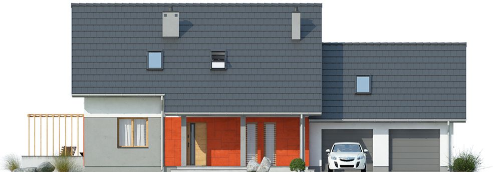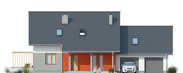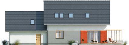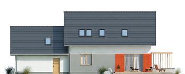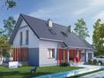 Graficzne opracowanie rzutów poglądowych widocznych na karcie projektu zostało wykonane przez Extradom.pl. Prezentowane przez Extradom.pl wizualizacje wykonane zostały przez autora projektu i należy poczytywać je jedynie za przykład i propozycję wykończenia, wizję architektoniczną autora projektu. Ostateczne wykończenie budynku może nastąpić na wiele sposobów. Szczegółowe rozwiązania zastosowane w oferowanej dokumentacji - w tym również ilość, lokalizacje i wygląd okien, drzwi, kominów - mogą w niewielkim stopniu różnić się od prezentowanej wizualizacji budynku.