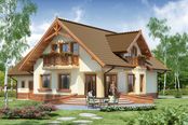 Fundamenty: bezpośrednie, na ławach i stopach fundamentowych. Ściany zewnętrzne: bloczki z bet. komórkowego - 36cm + styropian TERMO ORGANIKA typ Fasada 6 cm. Ściany wewnętrzne: bloczki z bet. komórkowego - 24 cm (działowe - 12 cm) + działowe z płyty G-K na ruszcie (poddasze). Strop: gęstożebrowy Teriva E oraz żelbetowy monolityczny gr. 12 i 24 cm. Elewacje: tynk - System firmy TERMO ORGANIKA. Pokrycie dachu: dachówka cementowa lub blachodachówka. Konstrukcja dachu: drewniana o układzie konstrukcyjnym mieszanym. Schody wewnętrzne: żelbetowe monolityczne zabiegowe. Ogrzewanie: kocioł gazowy kondensacyjny, dodatkowe źródło ciepła - kominek z płaszczem wodnym. Projekt jest zgodny z wymaganiami WT2021, a konstrukcja była obliczana zgodnie z eurokodami.