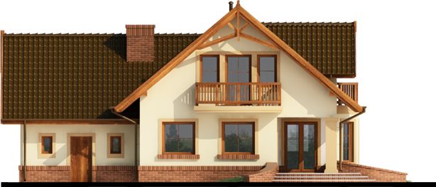 Graficzne opracowanie rzutów poglądowych widocznych na karcie projektu zostało wykonane przez Extradom.pl. Prezentowane przez Extradom.pl wizualizacje wykonane zostały przez autora projektu i należy poczytywać je jedynie za przykład i propozycję wykończenia, wizję architektoniczną autora projektu. Ostateczne wykończenie budynku może nastąpić na wiele sposobów. Szczegółowe rozwiązania zastosowane w oferowanej dokumentacji - w tym również ilość, lokalizacje i wygląd okien, drzwi, kominów - mogą w niewielkim stopniu różnić się od prezentowanej wizualizacji budynku.