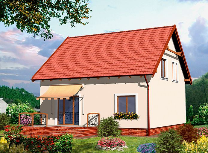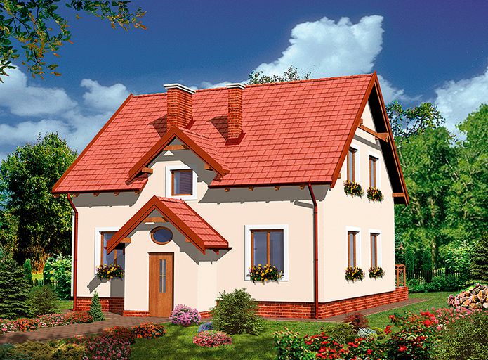 Ściany zewnętrzne: technologia tradycyjna - pustak ceramiczny + izolacja. Pokrycie dachu: dachówka ceramiczna.