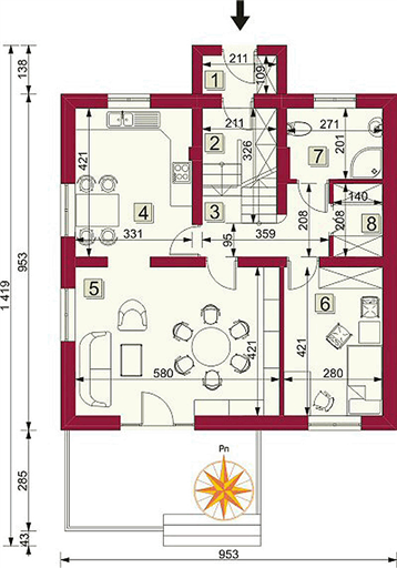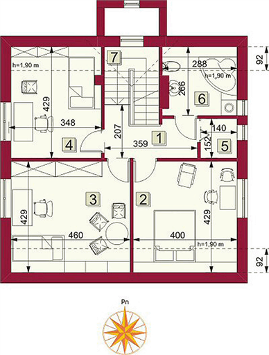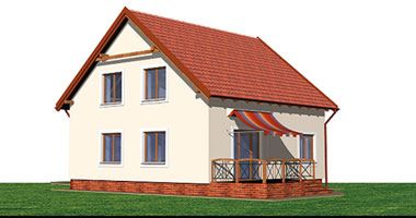 Graficzne opracowanie rzutów poglądowych widocznych na karcie projektu zostało wykonane przez Extradom.pl. Prezentowane przez Extradom.pl wizualizacje wykonane zostały przez autora projektu i należy poczytywać je jedynie za przykład i propozycję wykończenia, wizję architektoniczną autora projektu. Ostateczne wykończenie budynku może nastąpić na wiele sposobów. Szczegółowe rozwiązania zastosowane w oferowanej dokumentacji - w tym również ilość, lokalizacje i wygląd okien, drzwi, kominów - mogą w niewielkim stopniu różnić się od prezentowanej wizualizacji budynku.