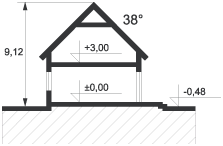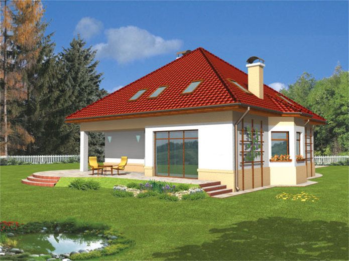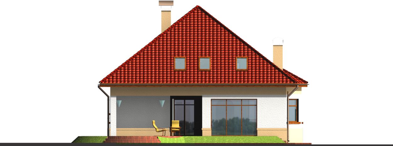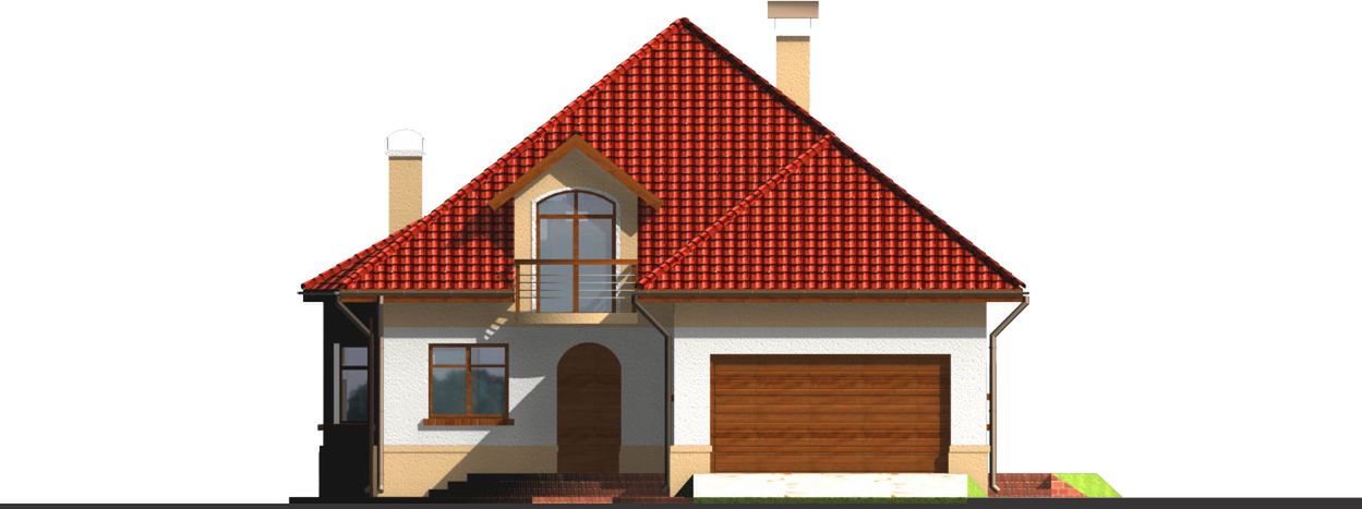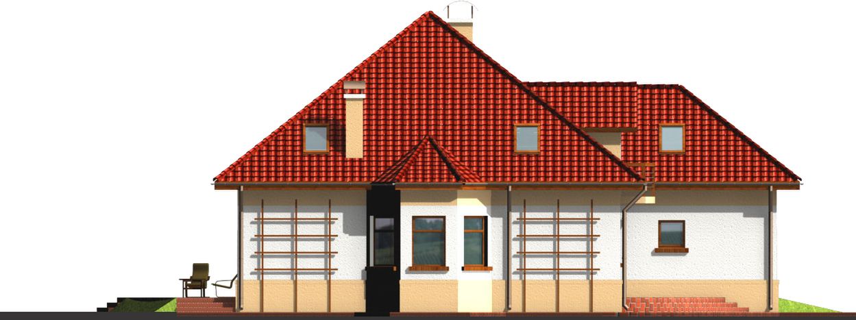 Graficzne opracowanie rzutów poglądowych widocznych na karcie projektu zostało wykonane przez Extradom.pl. Prezentowane przez Extradom.pl wizualizacje wykonane zostały przez autora projektu i należy poczytywać je jedynie za przykład i propozycję wykończenia, wizję architektoniczną autora projektu. Ostateczne wykończenie budynku może nastąpić na wiele sposobów. Szczegółowe rozwiązania zastosowane w oferowanej dokumentacji - w tym również ilość, lokalizacje i wygląd okien, drzwi, kominów - mogą w niewielkim stopniu różnić się od prezentowanej wizualizacji budynku.
