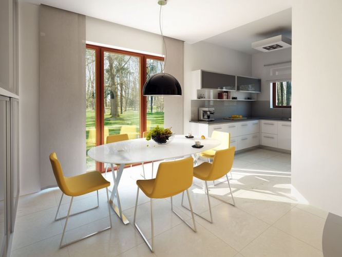 Posiadamy wąską i jednocześnie dosyć długą działkę, dlatego też przy wyborze projektu priorytetem były dla nas odpowiednie wymiary budynku. Oprócz tego, chcieliśmy aby wszystkie pomieszczenia znajdowały się na jednej kondygnacji. Spośród propozycji domów parterowych, które dobrze zmieściłyby się na naszą działkę, do gustu najbardziej przypadł nam projekt Granat BSA1548. Uwzględnione w nim wnętrze wydało nam się przestronne i funkcjonalne, a ponadto bardzo spodobały nam się duże przeszklenia.Realizacja przebiegła sprawnie i zgodnie z planem. Projekt pod względem konstrukcyjnym był dobrze opracowany, a sam dom jest całkiem łatwy w budowie. Mój mąż posiada doświadczenie w temacie budownictwa i nowy dom postawił własnymi siłami. Świetnie sobie poradził na każdym etapie i finalnie wszystko poszło po naszej myśli. Fundamenty wylaliśmy wiosną 2015 r., a następnie zrobiliśmy roczną przerwę w budowie. Po zdobyciu większej ilości środków finansowych, w następnym roku mogliśmy ruszyć już z murowaniem ścian. Obecnie (styczeń 2018 r.) do całkowitego zakończenia inwestycji zostały nam już tylko ostatnie, drobne wykończenia.Budynek, zgodnie z zaleceniami projektu Granat BSA1548, został postawiony przy użyciu ceramicznych pustaków. W całym domu wstawiliśmy wysokiej klasy energooszczędne okna. Przyznam, że nie należały do tanich, jednak uważam że warto zainwestować w takie rozwiązanie, gdyż później przekłada się to na niższe koszty eksploatacji. Dach przykryliśmy blachodachówką. Przy użyciu powyższych materiałów, realizacja na etapie stanu surowego zamkniętego wraz montażem rolet zewnętrznych, wyniosła ok. 200 tys. zł.Projekt domu Granat BSA1548 został bardzo funkcjonalnie przemyślany, a drobne modyfikacje jakie w nim wprowadziliśmy wynikały jedynie z naszych własnych preferencji. Ukierunkowaliśmy się na ekologiczne rozwiązania i zdecydowaliśmy się na zmianę systemu ogrzewania na pompę ciepła. Nie zajmuje wiele miejsca, dlatego postanowiliśmy zamontować ją w pralni, a w efekcie powierzchnię oryginalnej kotłowni przeznaczyliśmy na zrobienie małego, dodatkowego pokoju. Boczną część tarasu wydłużyliśmy do okna w jadalni, zmieniając jednocześnie przeszklenie typu „fix” na przesuwne drzwi tarasowe.Jesteśmy zadowoleni z wyboru projektu domu parterowego Granat BSA1548. Budynek okazał się być całkiem łatwy w realizacji i w dalszym ciągu w całości bardzo nam się podoba. Wnętrze jest komfortowe, a nowy dom w całości spełnił nasze oczekiwania. Pozdrawiam.