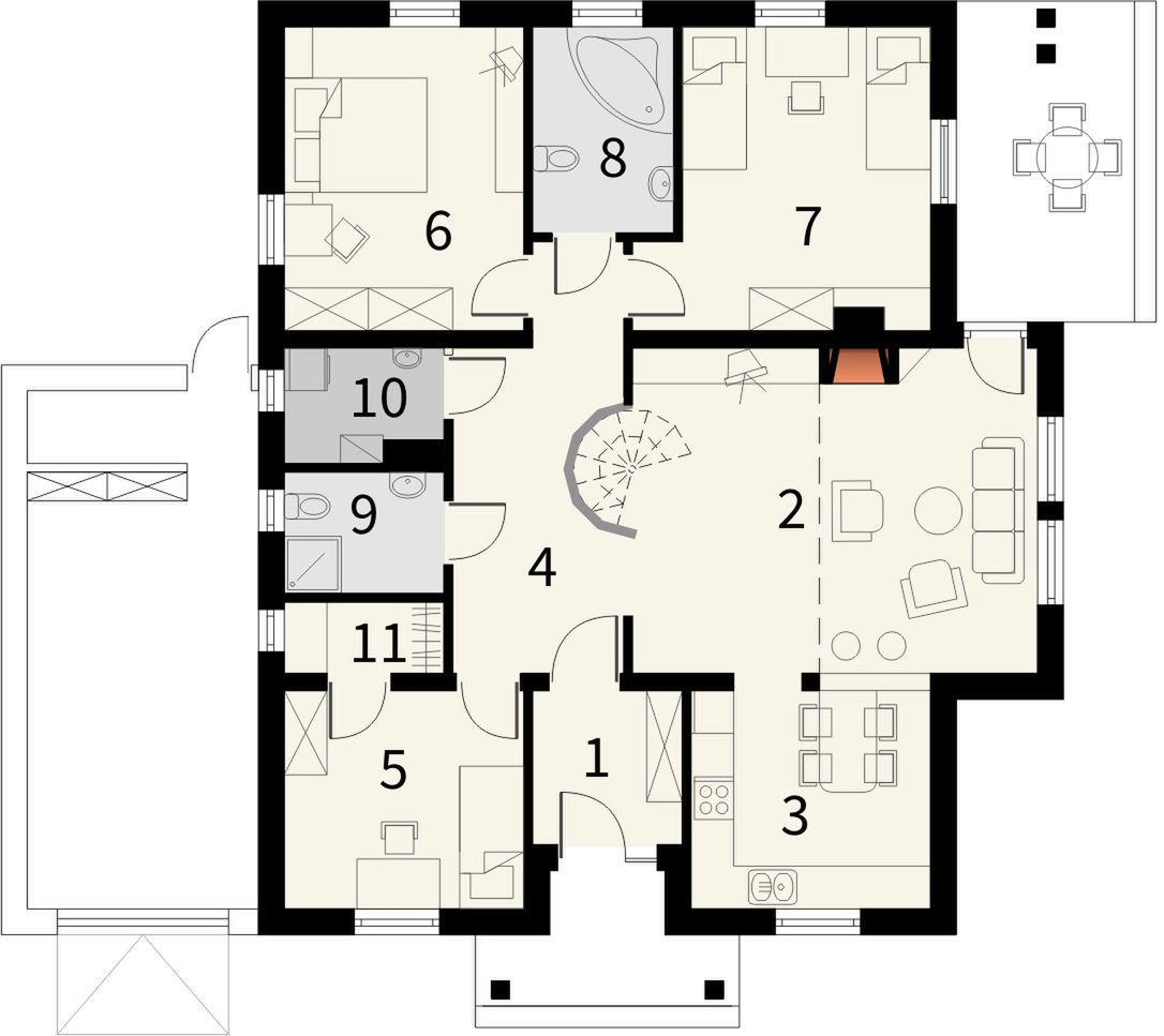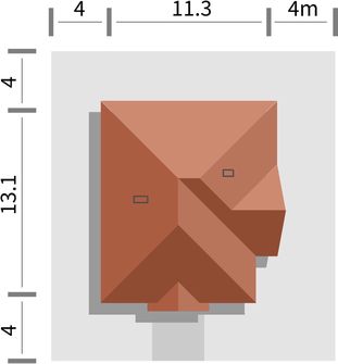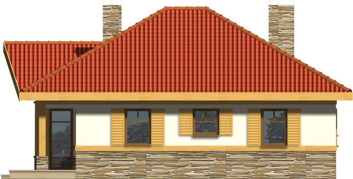 Graficzne opracowanie rzutów poglądowych widocznych na karcie projektu zostało wykonane przez Extradom.pl. Prezentowane przez Extradom.pl wizualizacje wykonane zostały przez autora projektu i należy poczytywać je jedynie za przykład i propozycję wykończenia, wizję architektoniczną autora projektu. Ostateczne wykończenie budynku może nastąpić na wiele sposobów. Szczegółowe rozwiązania zastosowane w oferowanej dokumentacji - w tym również ilość, lokalizacje i wygląd okien, drzwi, kominów - mogą w niewielkim stopniu różnić się od prezentowanej wizualizacji budynku.