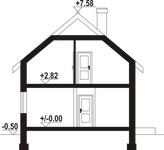 Graficzne opracowanie rzutów poglądowych widocznych na karcie projektu zostało wykonane przez Extradom.pl. Prezentowane przez Extradom.pl wizualizacje wykonane zostały przez autora projektu i należy poczytywać je jedynie za przykład i propozycję wykończenia, wizję architektoniczną autora projektu. Ostateczne wykończenie budynku może nastąpić na wiele sposobów. Szczegółowe rozwiązania zastosowane w oferowanej dokumentacji - w tym również ilość, lokalizacje i wygląd okien, drzwi, kominów - mogą w niewielkim stopniu różnić się od prezentowanej wizualizacji budynku.
