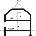 Graficzne opracowanie rzutów poglądowych widocznych na karcie projektu zostało wykonane przez Extradom.pl. Prezentowane przez Extradom.pl wizualizacje wykonane zostały przez autora projektu i należy poczytywać je jedynie za przykład i propozycję wykończenia, wizję architektoniczną autora projektu. Ostateczne wykończenie budynku może nastąpić na wiele sposobów. Szczegółowe rozwiązania zastosowane w oferowanej dokumentacji - w tym również ilość, lokalizacje i wygląd okien, drzwi, kominów - mogą w niewielkim stopniu różnić się od prezentowanej wizualizacji budynku.