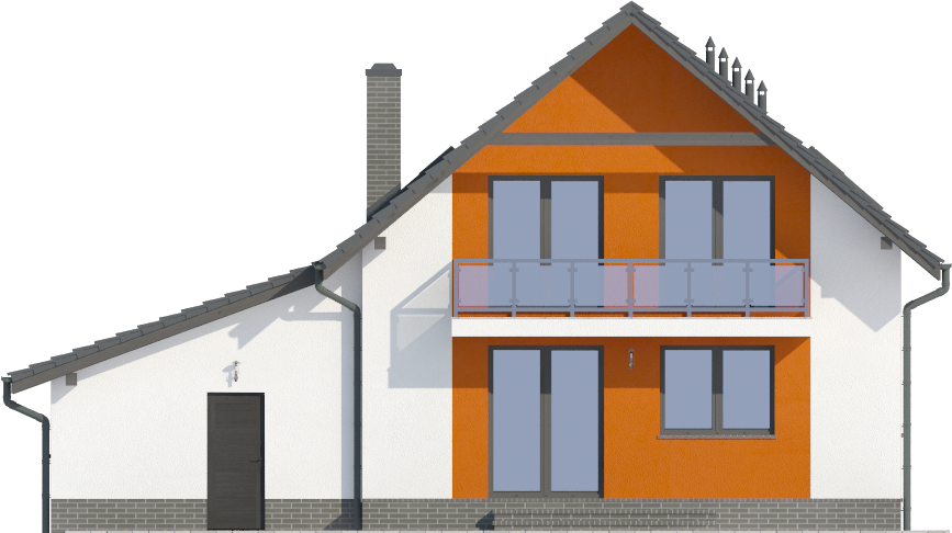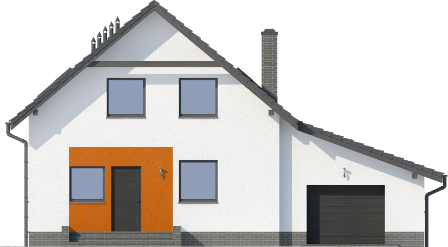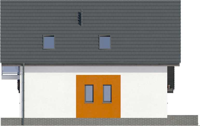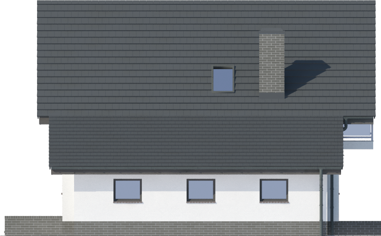 Graficzne opracowanie rzutów poglądowych widocznych na karcie projektu zostało wykonane przez Extradom.pl. Prezentowane przez Extradom.pl wizualizacje wykonane zostały przez autora projektu i należy poczytywać je jedynie za przykład i propozycję wykończenia, wizję architektoniczną autora projektu. Ostateczne wykończenie budynku może nastąpić na wiele sposobów. Szczegółowe rozwiązania zastosowane w oferowanej dokumentacji - w tym również ilość, lokalizacje i wygląd okien, drzwi, kominów - mogą w niewielkim stopniu różnić się od prezentowanej wizualizacji budynku.