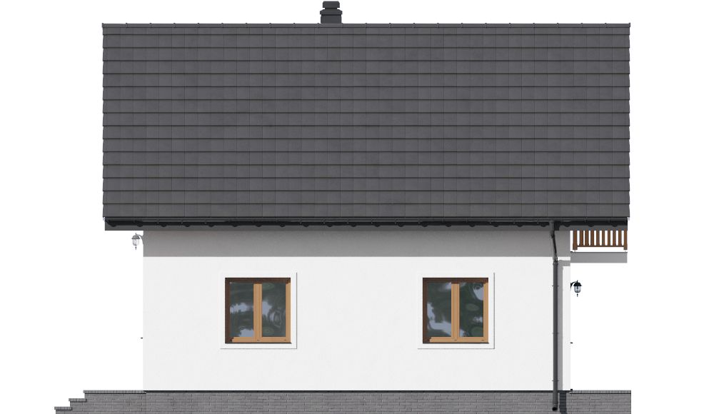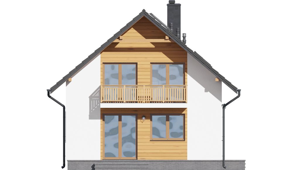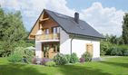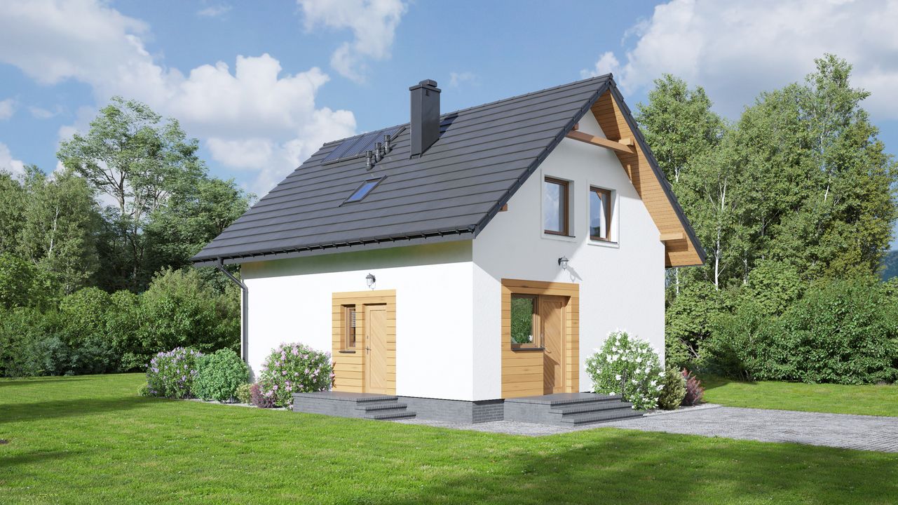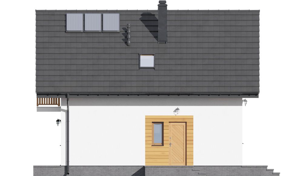 Graficzne opracowanie rzutów poglądowych widocznych na karcie projektu zostało wykonane przez Extradom.pl. Prezentowane przez Extradom.pl wizualizacje wykonane zostały przez autora projektu i należy poczytywać je jedynie za przykład i propozycję wykończenia, wizję architektoniczną autora projektu. Ostateczne wykończenie budynku może nastąpić na wiele sposobów. Szczegółowe rozwiązania zastosowane w oferowanej dokumentacji - w tym również ilość, lokalizacje i wygląd okien, drzwi, kominów - mogą w niewielkim stopniu różnić się od prezentowanej wizualizacji budynku.