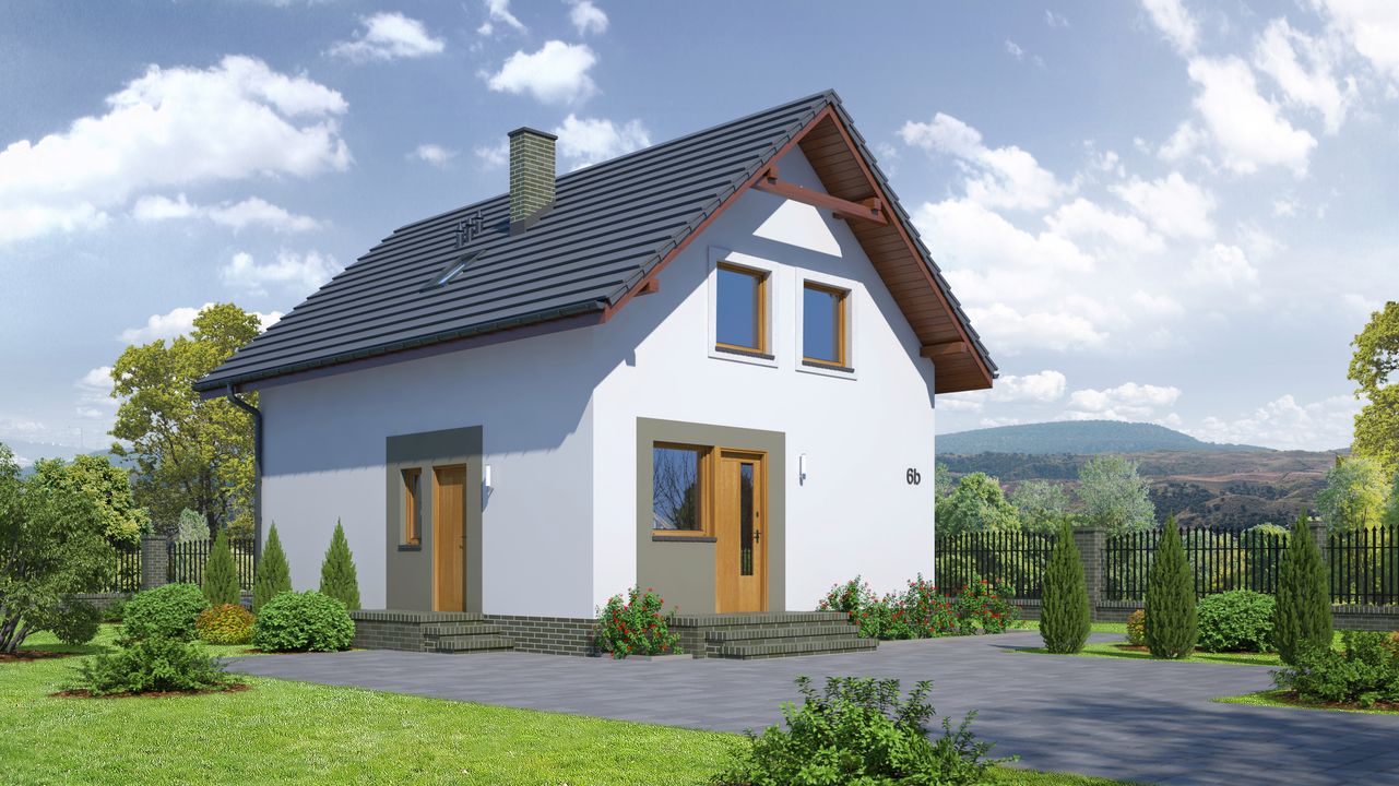 Graficzne opracowanie rzutów poglądowych widocznych na karcie projektu zostało wykonane przez Extradom.pl. Prezentowane przez Extradom.pl wizualizacje wykonane zostały przez autora projektu i należy poczytywać je jedynie za przykład i propozycję wykończenia, wizję architektoniczną autora projektu. Ostateczne wykończenie budynku może nastąpić na wiele sposobów. Szczegółowe rozwiązania zastosowane w oferowanej dokumentacji - w tym również ilość, lokalizacje i wygląd okien, drzwi, kominów - mogą w niewielkim stopniu różnić się od prezentowanej wizualizacji budynku.