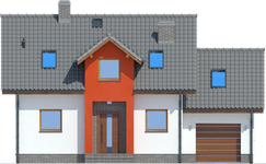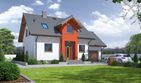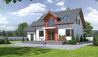 Graficzne opracowanie rzutów poglądowych widocznych na karcie projektu zostało wykonane przez Extradom.pl. Prezentowane przez Extradom.pl wizualizacje wykonane zostały przez autora projektu i należy poczytywać je jedynie za przykład i propozycję wykończenia, wizję architektoniczną autora projektu. Ostateczne wykończenie budynku może nastąpić na wiele sposobów. Szczegółowe rozwiązania zastosowane w oferowanej dokumentacji - w tym również ilość, lokalizacje i wygląd okien, drzwi, kominów - mogą w niewielkim stopniu różnić się od prezentowanej wizualizacji budynku.