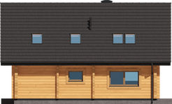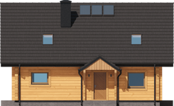 Wysokość ścianki kolankowej: 0.39 m. Strop: drewniany. Pokrycie dachu: dachówka gontopodobna Gerard Corona. Ściany zewnętrzne: płazy drewniane + wełna mineralna + deska. Ściany wewnętrzne: płazy drewniane. Typ ogrzewania: kocioł gazowy. Instalacje dodatkowe: instalacja solarna. Inne: okna połaciowe Velux.
