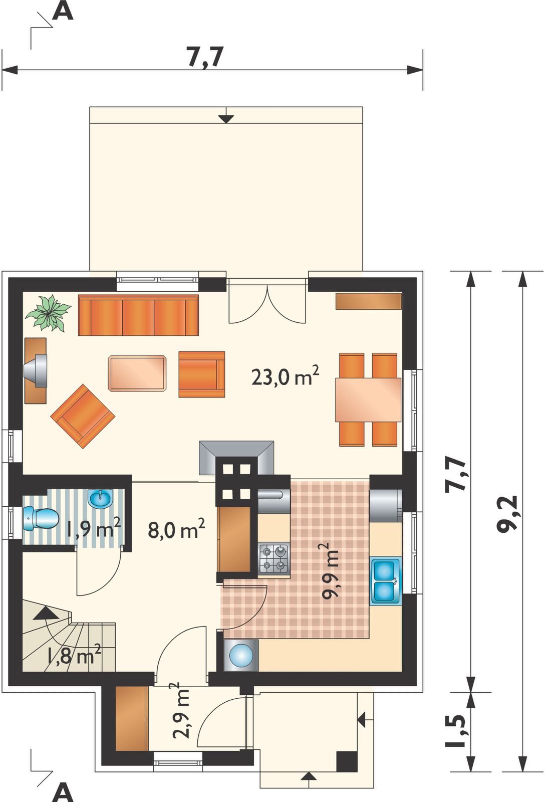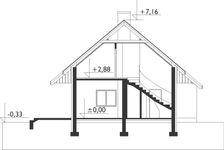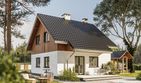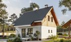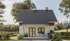 Graficzne opracowanie rzutów poglądowych widocznych na karcie projektu zostało wykonane przez Extradom.pl. Prezentowane przez Extradom.pl wizualizacje wykonane zostały przez autora projektu i należy poczytywać je jedynie za przykład i propozycję wykończenia, wizję architektoniczną autora projektu. Ostateczne wykończenie budynku może nastąpić na wiele sposobów. Szczegółowe rozwiązania zastosowane w oferowanej dokumentacji - w tym również ilość, lokalizacje i wygląd okien, drzwi, kominów - mogą w niewielkim stopniu różnić się od prezentowanej wizualizacji budynku.