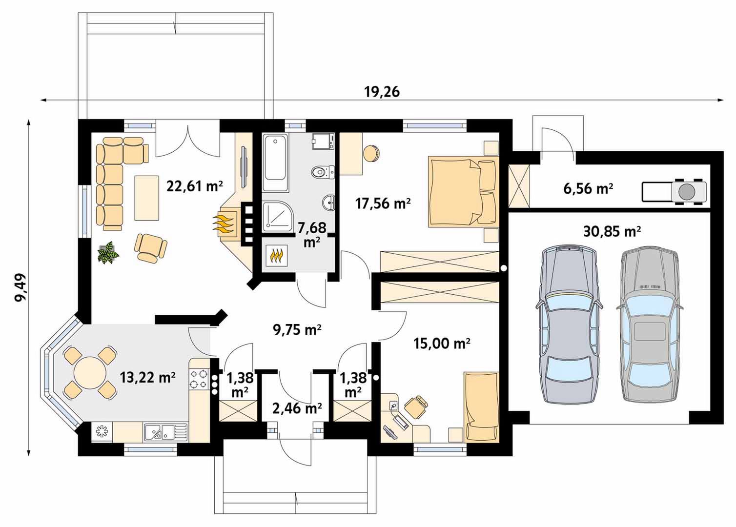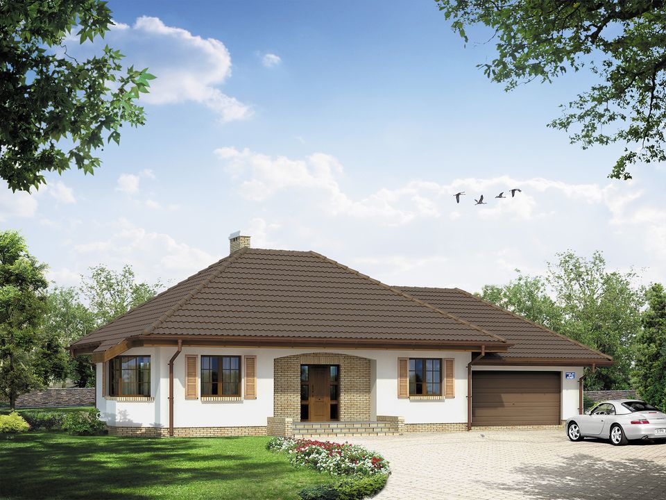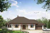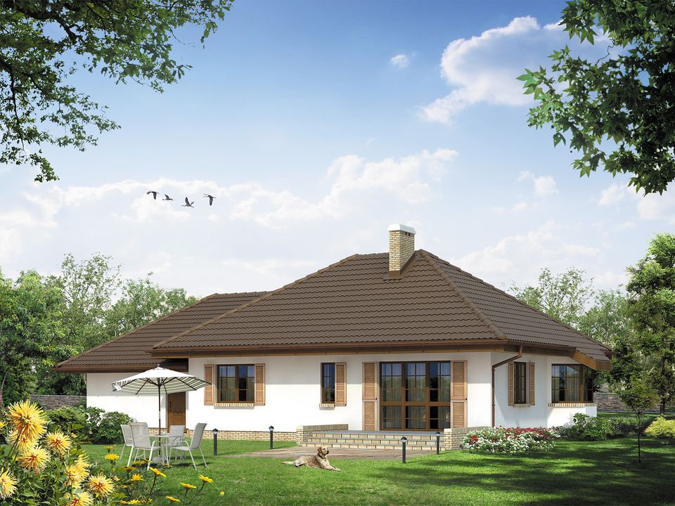 Graficzne opracowanie rzutów poglądowych widocznych na karcie projektu zostało wykonane przez Extradom.pl. Prezentowane przez Extradom.pl wizualizacje wykonane zostały przez autora projektu i należy poczytywać je jedynie za przykład i propozycję wykończenia, wizję architektoniczną autora projektu. Ostateczne wykończenie budynku może nastąpić na wiele sposobów. Szczegółowe rozwiązania zastosowane w oferowanej dokumentacji - w tym również ilość, lokalizacje i wygląd okien, drzwi, kominów - mogą w niewielkim stopniu różnić się od prezentowanej wizualizacji budynku.