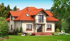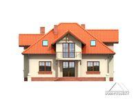 Graficzne opracowanie rzutów poglądowych widocznych na karcie projektu zostało wykonane przez Extradom.pl. Prezentowane przez Extradom.pl wizualizacje wykonane zostały przez autora projektu i należy poczytywać je jedynie za przykład i propozycję wykończenia, wizję architektoniczną autora projektu. Ostateczne wykończenie budynku może nastąpić na wiele sposobów. Szczegółowe rozwiązania zastosowane w oferowanej dokumentacji - w tym również ilość, lokalizacje i wygląd okien, drzwi, kominów - mogą w niewielkim stopniu różnić się od prezentowanej wizualizacji budynku.