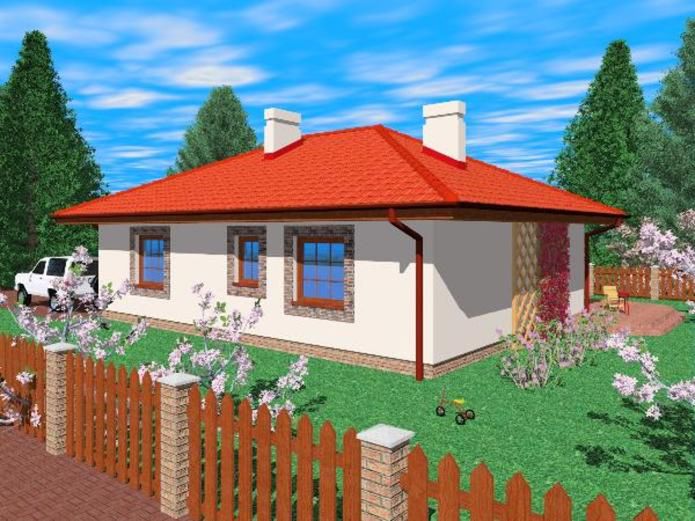 Fundamenty żelbetowe. Ściany zewnętrzne dwuwarstwowe z pustaków ceramicznych ocieplonych styropianem, ściany wewnętrzne nośne z pustaków ceramicznych, ścianki działowe z cegły dziurawki lub płyt GK, strop żelbetowy monolityczny, więźba dachowa drewniana, kryta dachówką cementową lub ceramiczną. Możliwe jest zastosowanie ogrzewania - kominkowego lub gazowego.