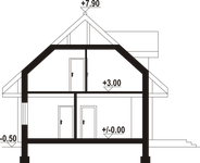 Graficzne opracowanie rzutów poglądowych widocznych na karcie projektu zostało wykonane przez Extradom.pl. Prezentowane przez Extradom.pl wizualizacje wykonane zostały przez autora projektu i należy poczytywać je jedynie za przykład i propozycję wykończenia, wizję architektoniczną autora projektu. Ostateczne wykończenie budynku może nastąpić na wiele sposobów. Szczegółowe rozwiązania zastosowane w oferowanej dokumentacji - w tym również ilość, lokalizacje i wygląd okien, drzwi, kominów - mogą w niewielkim stopniu różnić się od prezentowanej wizualizacji budynku.