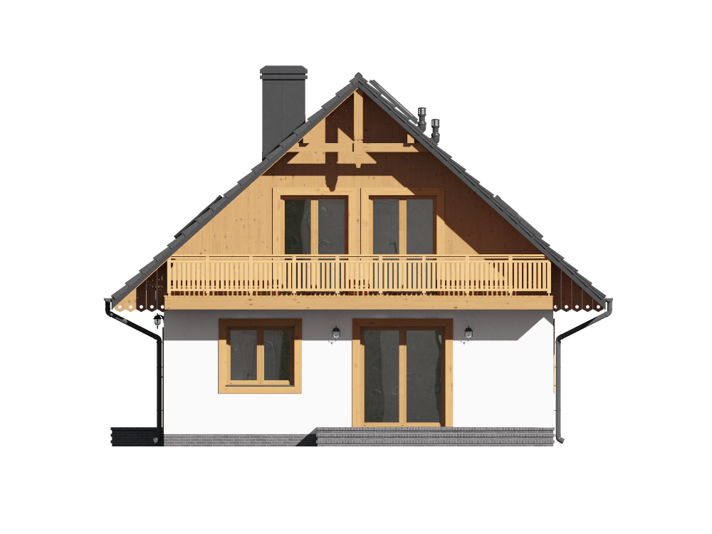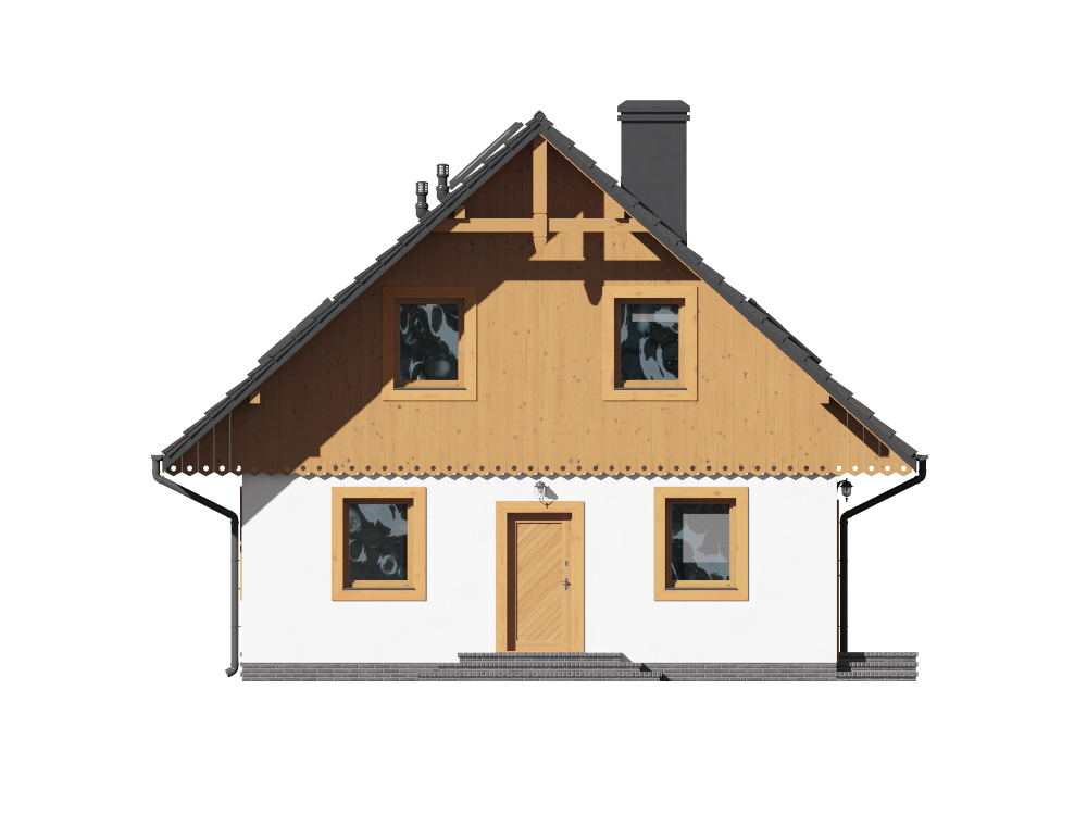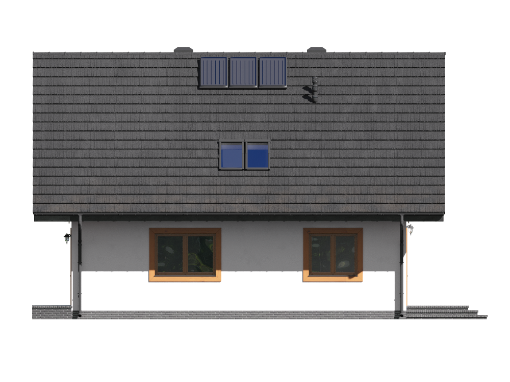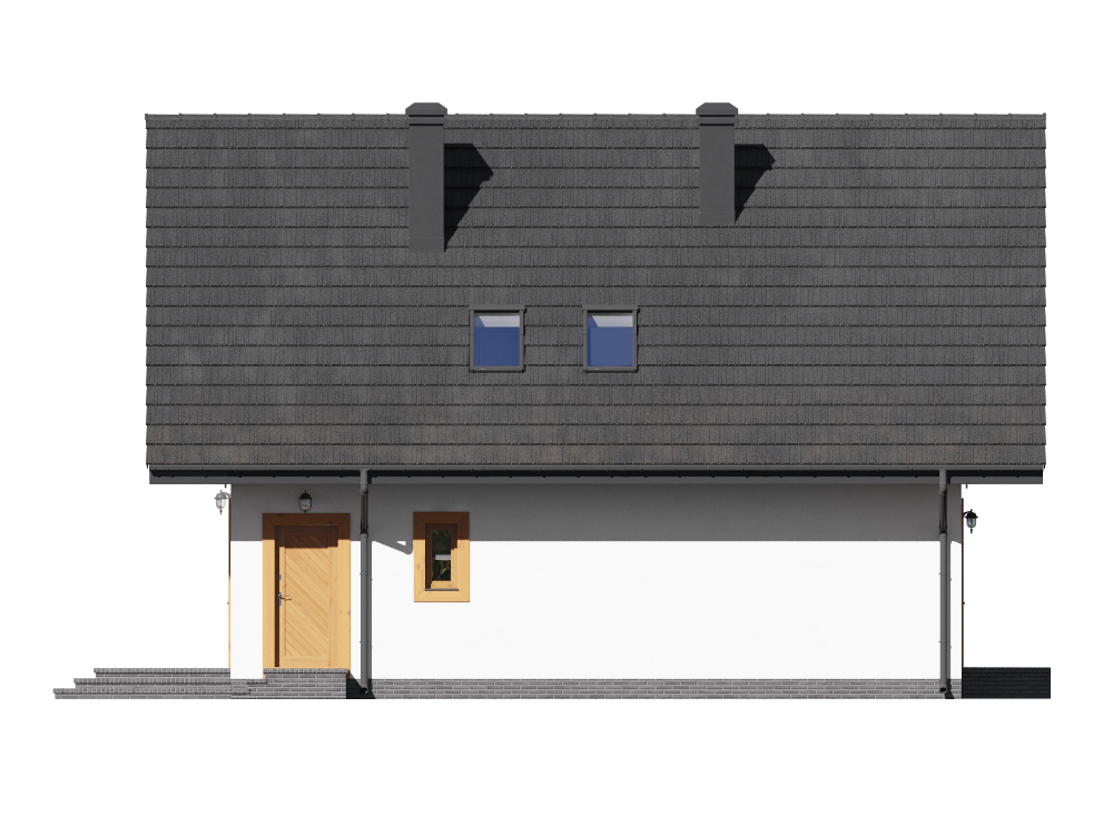 Graficzne opracowanie rzutów poglądowych widocznych na karcie projektu zostało wykonane przez Extradom.pl. Prezentowane przez Extradom.pl wizualizacje wykonane zostały przez autora projektu i należy poczytywać je jedynie za przykład i propozycję wykończenia, wizję architektoniczną autora projektu. Ostateczne wykończenie budynku może nastąpić na wiele sposobów. Szczegółowe rozwiązania zastosowane w oferowanej dokumentacji - w tym również ilość, lokalizacje i wygląd okien, drzwi, kominów - mogą w niewielkim stopniu różnić się od prezentowanej wizualizacji budynku.
