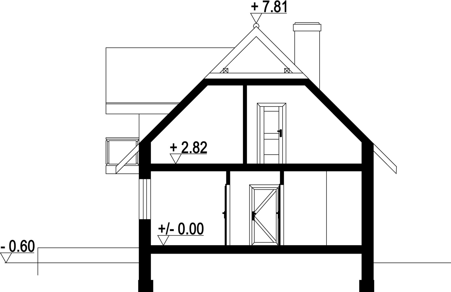 Wysokość ścianki kolankowej: 0.78 m. Strop: płyta żelbetowa. Pokrycie dachu: dachówka ceramiczna. Ściany zewnętrzne: pustaki ceramiczne + styropian. Ściany wewnętrzne: pustaki ceramiczne. Typ ogrzewania: kocioł gazowy lub kocioł na paliwo stałe.