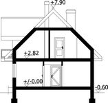 Wysokość ścianki kolankowej: 0.68 m. Strop: drewniany. Pokrycie dachu: dachówka gontopodobna Gerard Corona. Ściany zewnętrzne: szkieletowe drewniane ocieplone wełną mineralną. Ściany wewnętrzne: szkieletowe drewniane. Typ ogrzewania: kocioł gazowy lub kocioł na paliwo stałe.