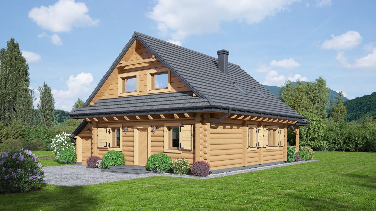 Wysokość ścianki kolankowej: 0.83 m. Strop: drewniany. Pokrycie dachu: dachówka gontopodobna Gerard Corona. Ściany zewnętrzne: płazy drewniane + wełna mineralna + deska. Ściany wewnętrzne: płazy drewniane. Typ ogrzewania: elektryczne. Instalacje dodatkowe: instalacja wentylacji mech. z rekuperacją, instalacja solarna. Inne: okna połaciowe Velux.