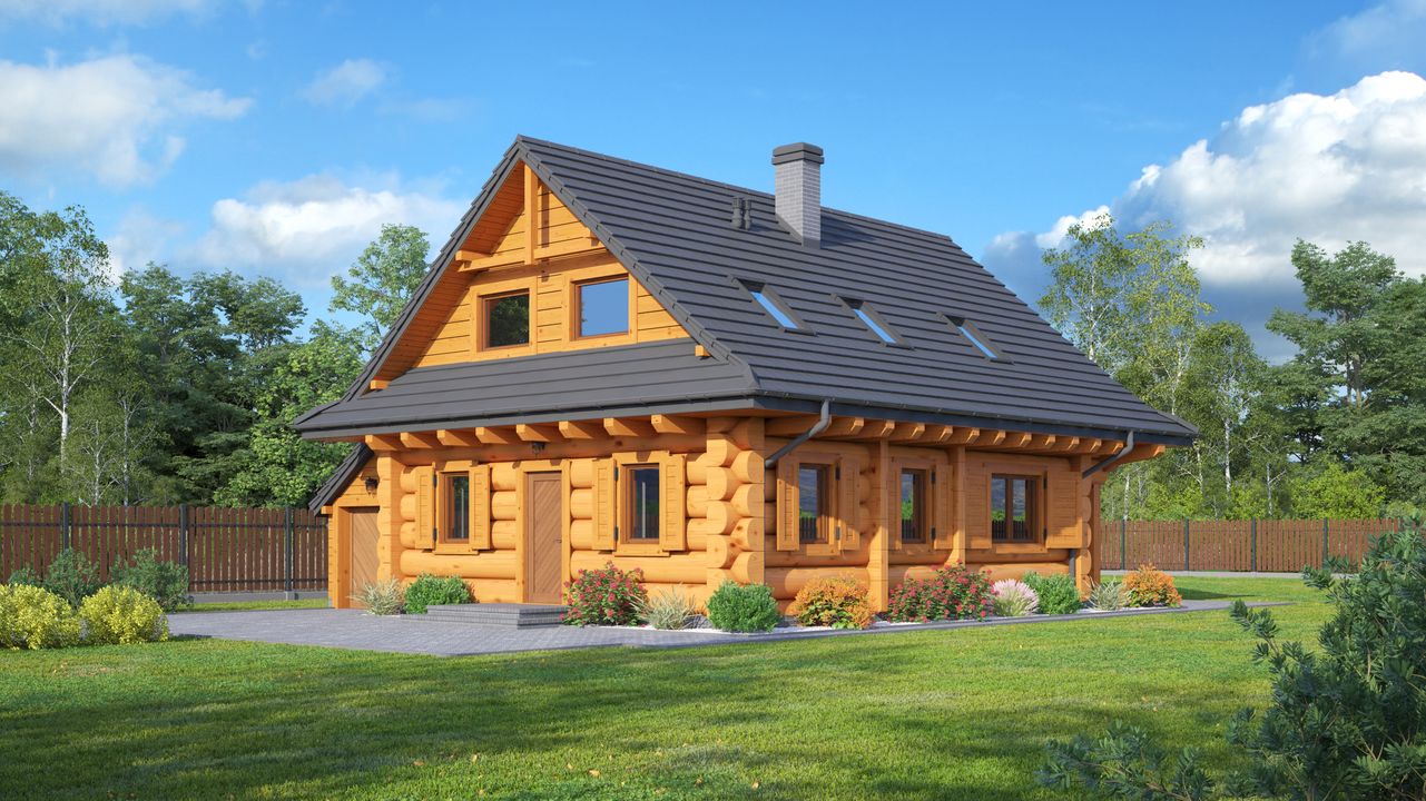 Graficzne opracowanie rzutów poglądowych widocznych na karcie projektu zostało wykonane przez Extradom.pl. Prezentowane przez Extradom.pl wizualizacje wykonane zostały przez autora projektu i należy poczytywać je jedynie za przykład i propozycję wykończenia, wizję architektoniczną autora projektu. Ostateczne wykończenie budynku może nastąpić na wiele sposobów. Szczegółowe rozwiązania zastosowane w oferowanej dokumentacji - w tym również ilość, lokalizacje i wygląd okien, drzwi, kominów - mogą w niewielkim stopniu różnić się od prezentowanej wizualizacji budynku.