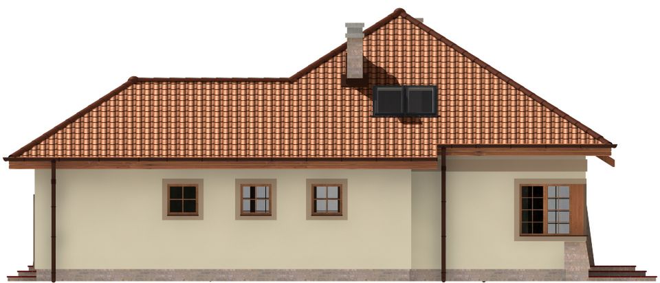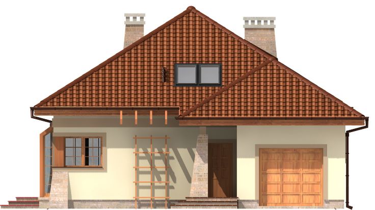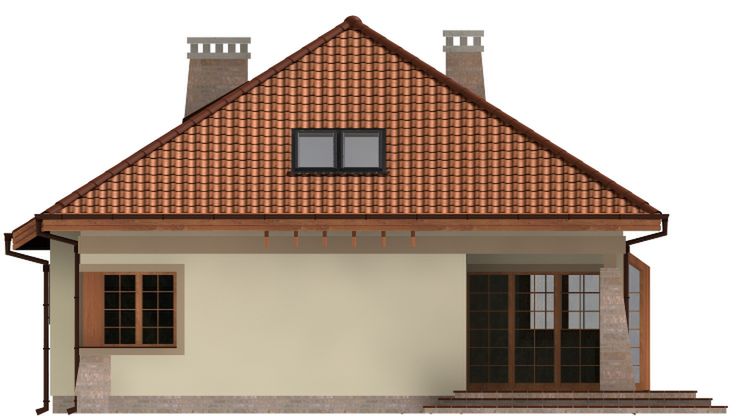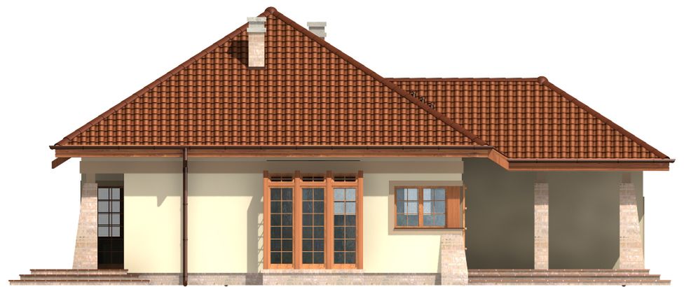 Graficzne opracowanie rzutów poglądowych widocznych na karcie projektu zostało wykonane przez Extradom.pl. Prezentowane przez Extradom.pl wizualizacje wykonane zostały przez autora projektu i należy poczytywać je jedynie za przykład i propozycję wykończenia, wizję architektoniczną autora projektu. Ostateczne wykończenie budynku może nastąpić na wiele sposobów. Szczegółowe rozwiązania zastosowane w oferowanej dokumentacji - w tym również ilość, lokalizacje i wygląd okien, drzwi, kominów - mogą w niewielkim stopniu różnić się od prezentowanej wizualizacji budynku.