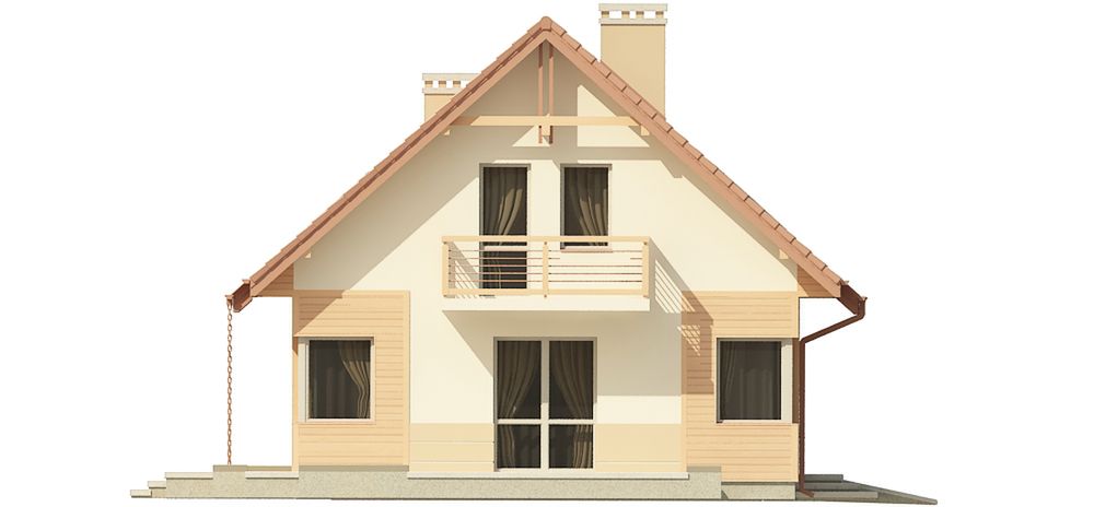Graficzne opracowanie rzutów poglądowych widocznych na karcie projektu zostało wykonane przez Extradom.pl. Prezentowane przez Extradom.pl wizualizacje wykonane zostały przez autora projektu i należy poczytywać je jedynie za przykład i propozycję wykończenia, wizję architektoniczną autora projektu. Ostateczne wykończenie budynku może nastąpić na wiele sposobów. Szczegółowe rozwiązania zastosowane w oferowanej dokumentacji - w tym również ilość, lokalizacje i wygląd okien, drzwi, kominów - mogą w niewielkim stopniu różnić się od prezentowanej wizualizacji budynku.