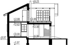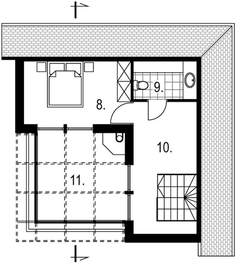 Graficzne opracowanie rzutów poglądowych widocznych na karcie projektu zostało wykonane przez Extradom.pl. Prezentowane przez Extradom.pl wizualizacje wykonane zostały przez autora projektu i należy poczytywać je jedynie za przykład i propozycję wykończenia, wizję architektoniczną autora projektu. Ostateczne wykończenie budynku może nastąpić na wiele sposobów. Szczegółowe rozwiązania zastosowane w oferowanej dokumentacji - w tym również ilość, lokalizacje i wygląd okien, drzwi, kominów - mogą w niewielkim stopniu różnić się od prezentowanej wizualizacji budynku.