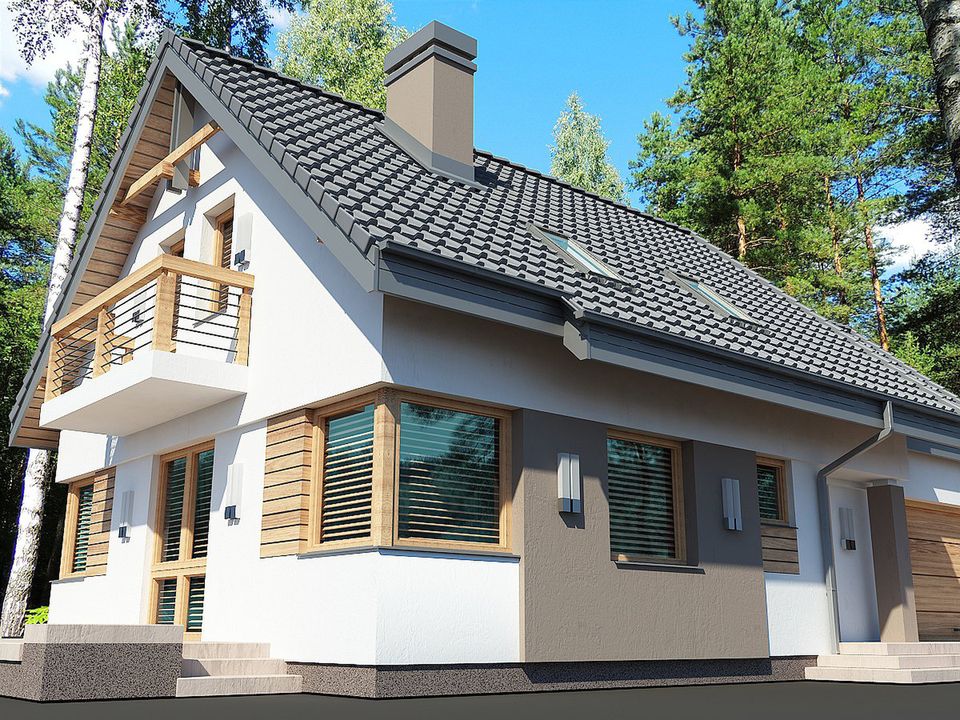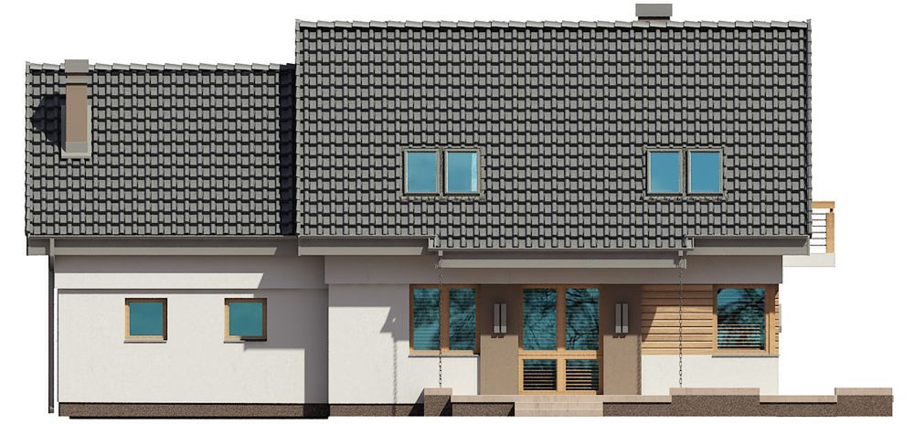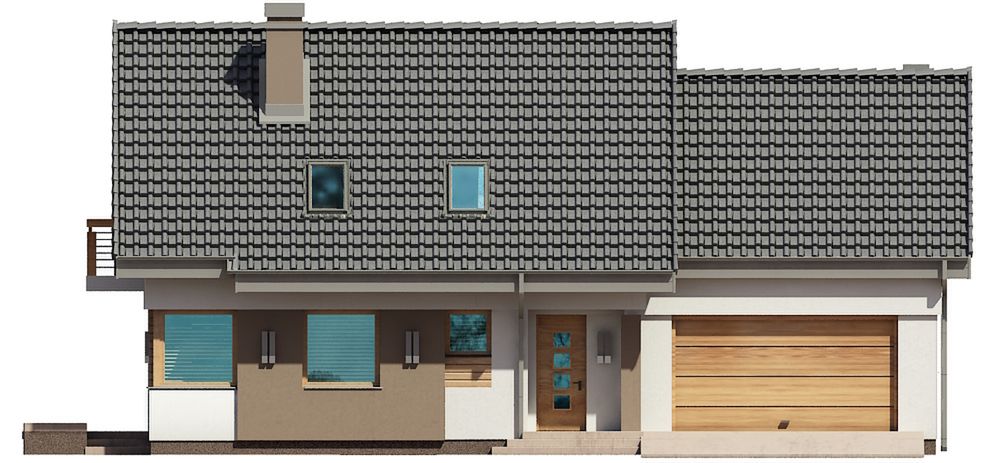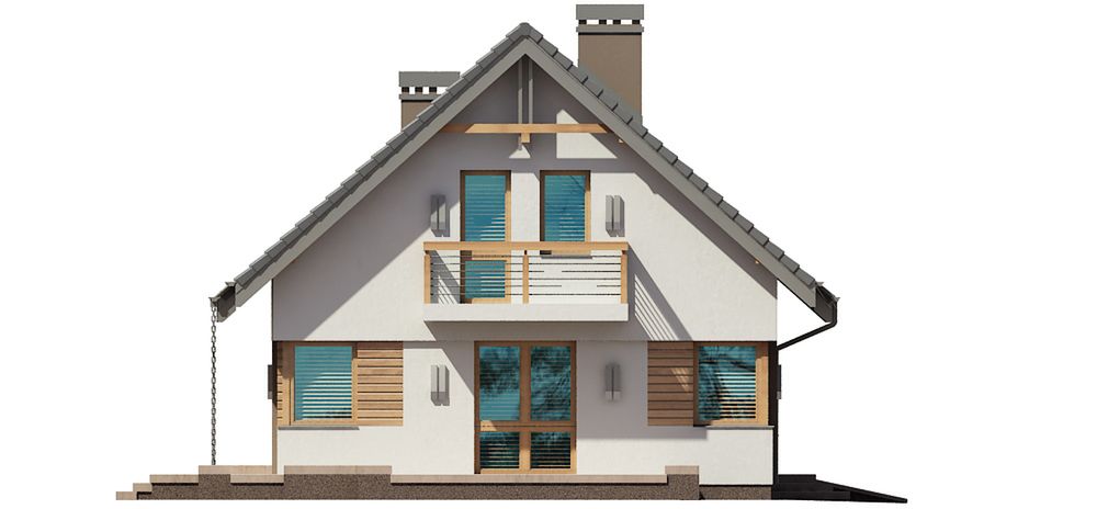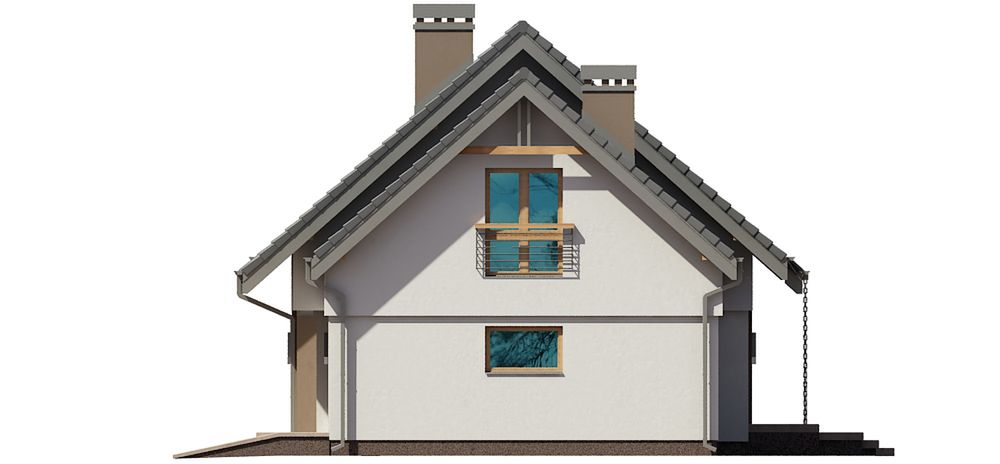 Graficzne opracowanie rzutów poglądowych widocznych na karcie projektu zostało wykonane przez Extradom.pl. Prezentowane przez Extradom.pl wizualizacje wykonane zostały przez autora projektu i należy poczytywać je jedynie za przykład i propozycję wykończenia, wizję architektoniczną autora projektu. Ostateczne wykończenie budynku może nastąpić na wiele sposobów. Szczegółowe rozwiązania zastosowane w oferowanej dokumentacji - w tym również ilość, lokalizacje i wygląd okien, drzwi, kominów - mogą w niewielkim stopniu różnić się od prezentowanej wizualizacji budynku.
