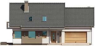 Graficzne opracowanie rzutów poglądowych widocznych na karcie projektu zostało wykonane przez Extradom.pl. Prezentowane przez Extradom.pl wizualizacje wykonane zostały przez autora projektu i należy poczytywać je jedynie za przykład i propozycję wykończenia, wizję architektoniczną autora projektu. Ostateczne wykończenie budynku może nastąpić na wiele sposobów. Szczegółowe rozwiązania zastosowane w oferowanej dokumentacji - w tym również ilość, lokalizacje i wygląd okien, drzwi, kominów - mogą w niewielkim stopniu różnić się od prezentowanej wizualizacji budynku.