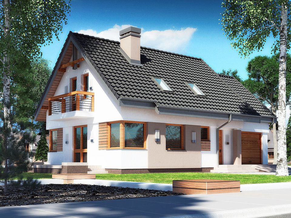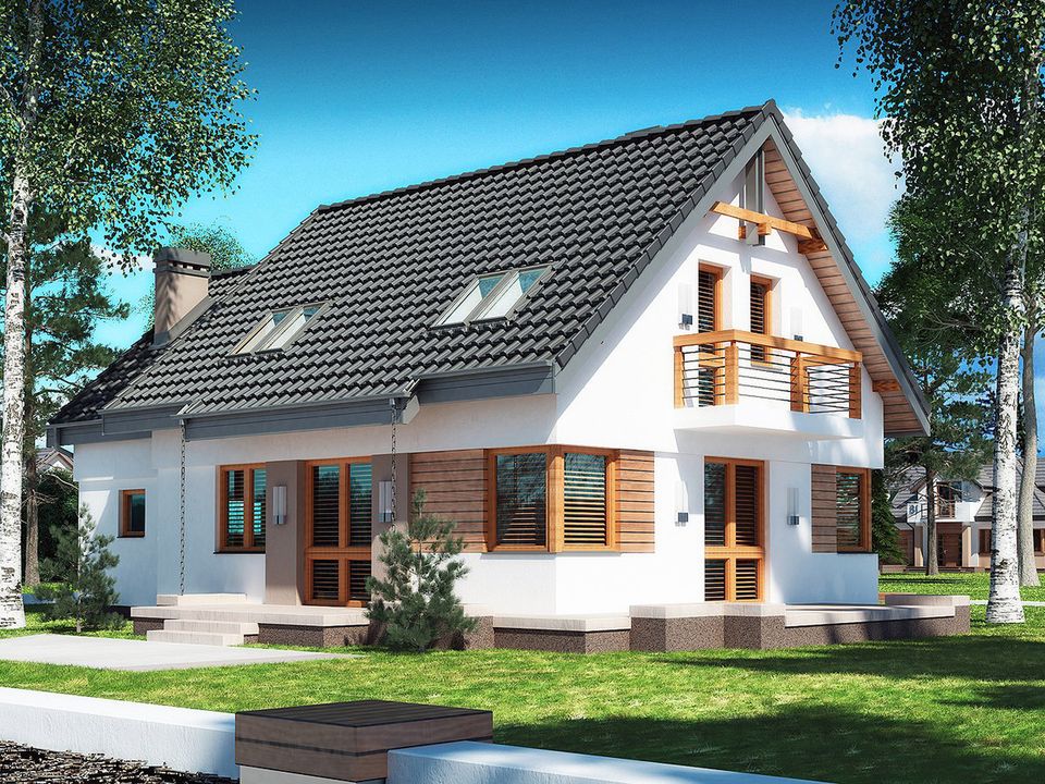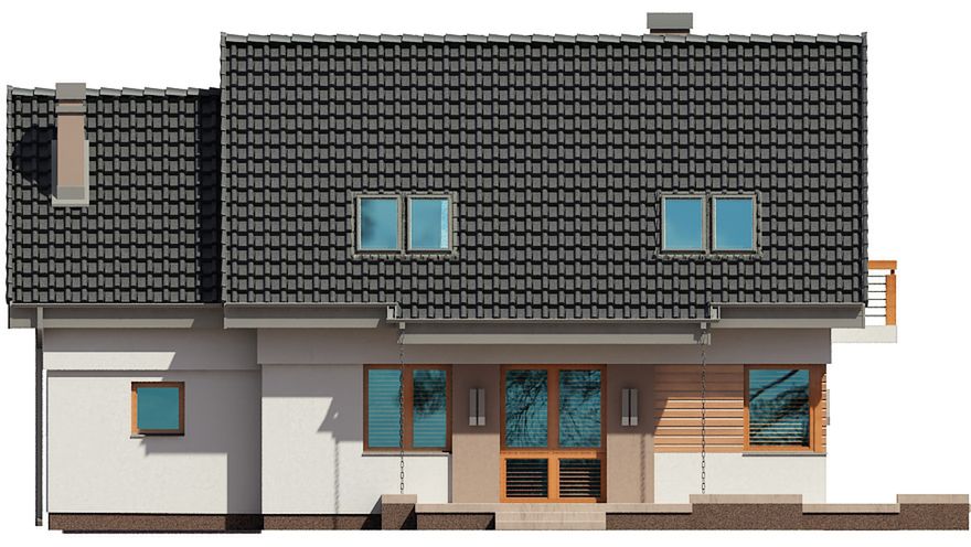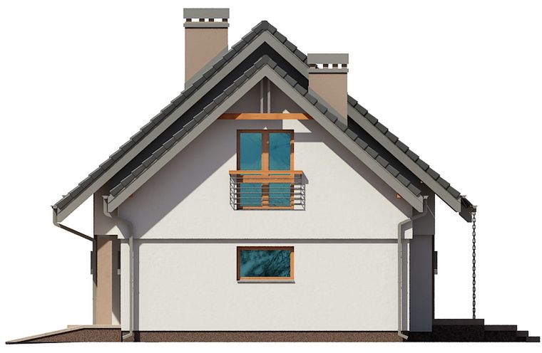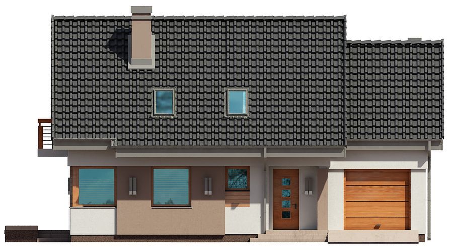 Graficzne opracowanie rzutów poglądowych widocznych na karcie projektu zostało wykonane przez Extradom.pl. Prezentowane przez Extradom.pl wizualizacje wykonane zostały przez autora projektu i należy poczytywać je jedynie za przykład i propozycję wykończenia, wizję architektoniczną autora projektu. Ostateczne wykończenie budynku może nastąpić na wiele sposobów. Szczegółowe rozwiązania zastosowane w oferowanej dokumentacji - w tym również ilość, lokalizacje i wygląd okien, drzwi, kominów - mogą w niewielkim stopniu różnić się od prezentowanej wizualizacji budynku.