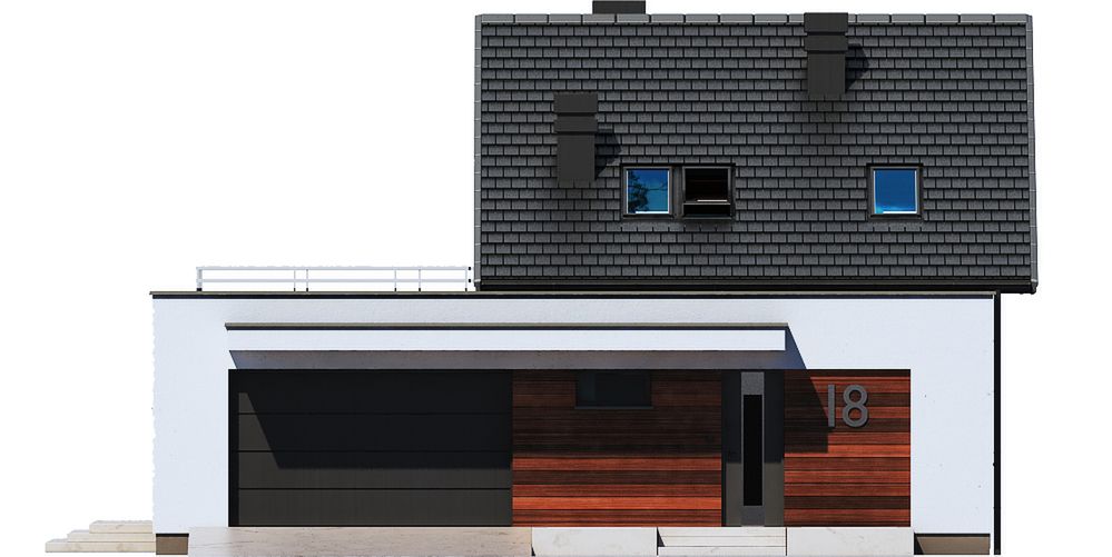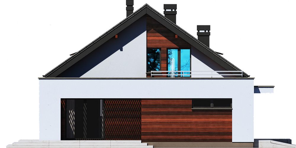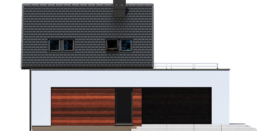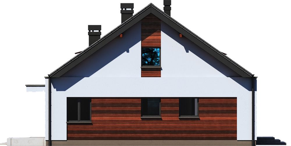 Graficzne opracowanie rzutów poglądowych widocznych na karcie projektu zostało wykonane przez Extradom.pl. Prezentowane przez Extradom.pl wizualizacje wykonane zostały przez autora projektu i należy poczytywać je jedynie za przykład i propozycję wykończenia, wizję architektoniczną autora projektu. Ostateczne wykończenie budynku może nastąpić na wiele sposobów. Szczegółowe rozwiązania zastosowane w oferowanej dokumentacji - w tym również ilość, lokalizacje i wygląd okien, drzwi, kominów - mogą w niewielkim stopniu różnić się od prezentowanej wizualizacji budynku.