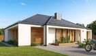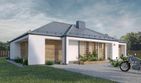 Graficzne opracowanie rzutów poglądowych widocznych na karcie projektu zostało wykonane przez Extradom.pl. Prezentowane przez Extradom.pl wizualizacje wykonane zostały przez autora projektu i należy poczytywać je jedynie za przykład i propozycję wykończenia, wizję architektoniczną autora projektu. Ostateczne wykończenie budynku może nastąpić na wiele sposobów. Szczegółowe rozwiązania zastosowane w oferowanej dokumentacji - w tym również ilość, lokalizacje i wygląd okien, drzwi, kominów - mogą w niewielkim stopniu różnić się od prezentowanej wizualizacji budynku.