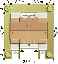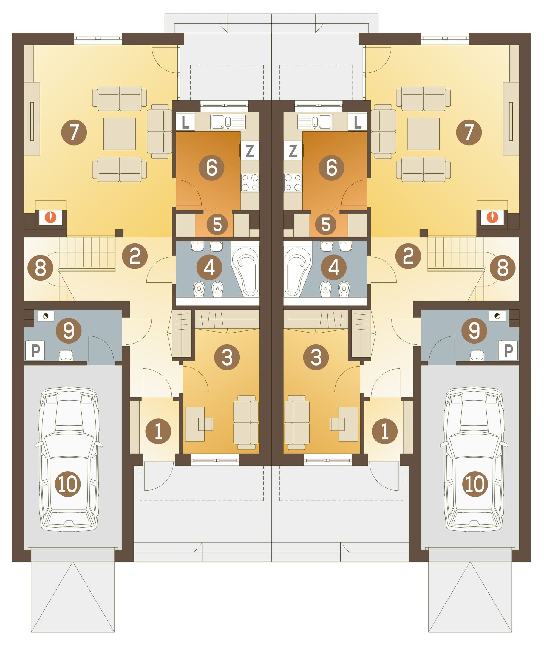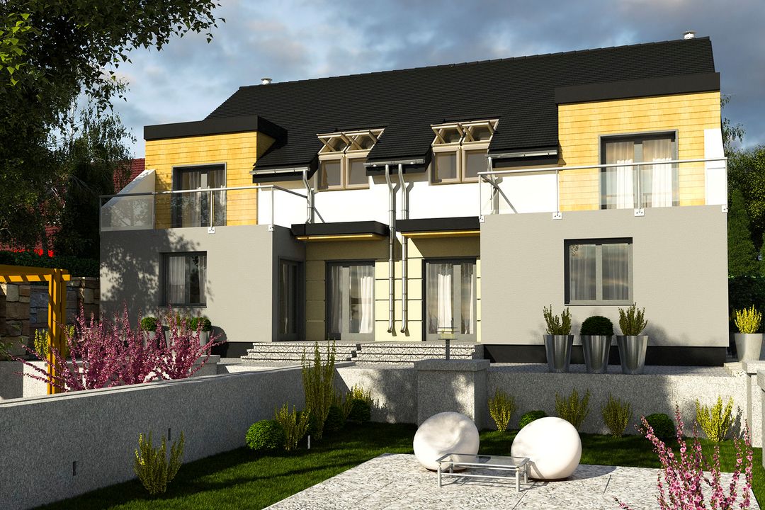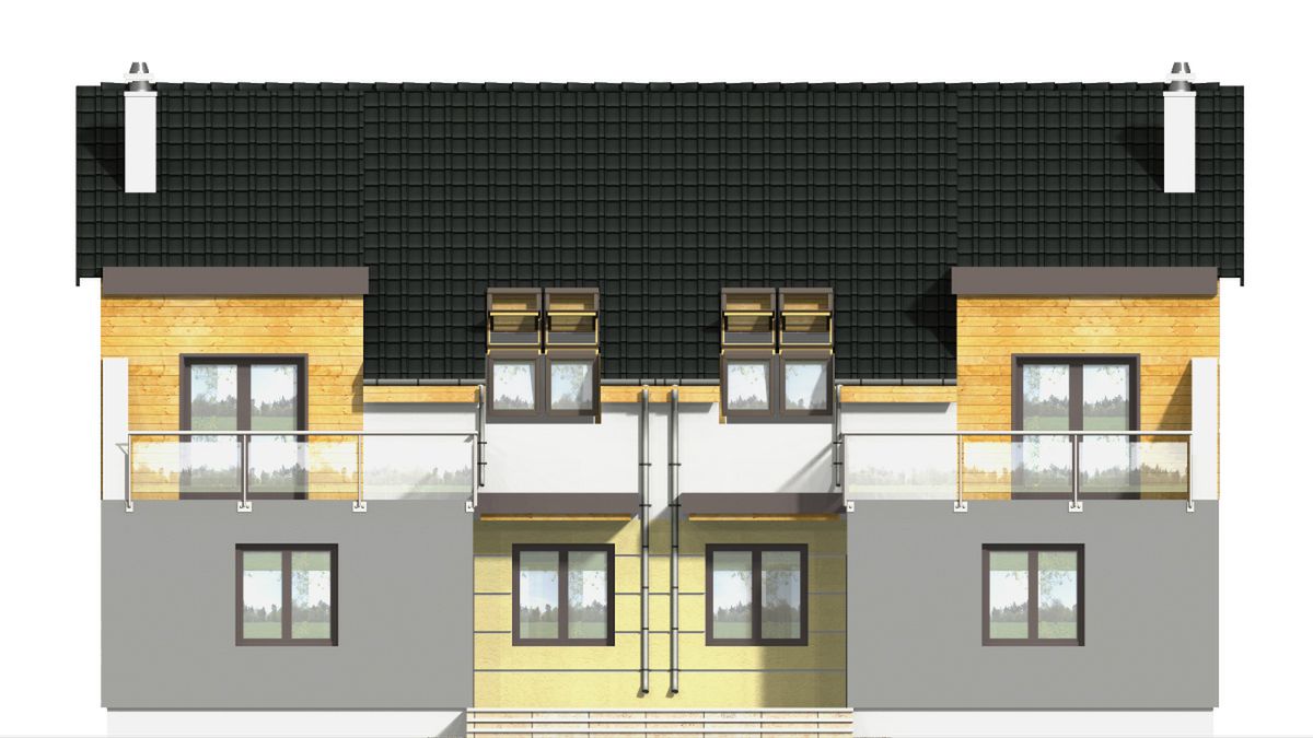 Budynek dwulokalowy posadowiony na wspólnym fundamencie. Jeśli planujesz budowę na osobnych działkach zamów pojedyncze segmenty: podstawa + lustro. Projekt jest w fazie koncepcji. Przy zakupie projektu należy zapłacić 35% zaliczki. Zaliczka jest bezzwrotna w przypadku zwrotu lub rezygnacji z zamówienia. Ze względu na dostosowanie projektu do aktualnych norm wymiary budynku mogą ulec zmianie.