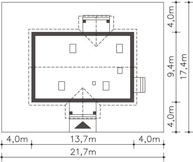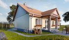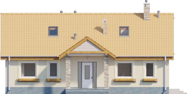 Graficzne opracowanie rzutów poglądowych widocznych na karcie projektu zostało wykonane przez Extradom.pl. Prezentowane przez Extradom.pl wizualizacje wykonane zostały przez autora projektu i należy poczytywać je jedynie za przykład i propozycję wykończenia, wizję architektoniczną autora projektu. Ostateczne wykończenie budynku może nastąpić na wiele sposobów. Szczegółowe rozwiązania zastosowane w oferowanej dokumentacji - w tym również ilość, lokalizacje i wygląd okien, drzwi, kominów - mogą w niewielkim stopniu różnić się od prezentowanej wizualizacji budynku.