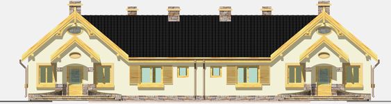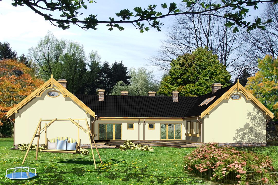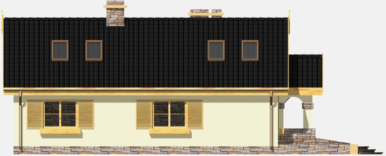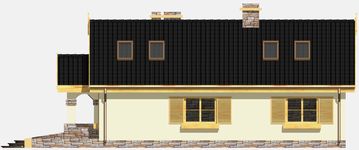 Graficzne opracowanie rzutów poglądowych widocznych na karcie projektu zostało wykonane przez Extradom.pl. Prezentowane przez Extradom.pl wizualizacje wykonane zostały przez autora projektu i należy poczytywać je jedynie za przykład i propozycję wykończenia, wizję architektoniczną autora projektu. Ostateczne wykończenie budynku może nastąpić na wiele sposobów. Szczegółowe rozwiązania zastosowane w oferowanej dokumentacji - w tym również ilość, lokalizacje i wygląd okien, drzwi, kominów - mogą w niewielkim stopniu różnić się od prezentowanej wizualizacji budynku.