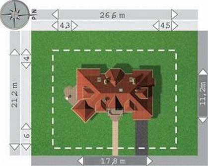 Graficzne opracowanie rzutów poglądowych widocznych na karcie projektu zostało wykonane przez Extradom.pl. Prezentowane przez Extradom.pl wizualizacje wykonane zostały przez autora projektu i należy poczytywać je jedynie za przykład i propozycję wykończenia, wizję architektoniczną autora projektu. Ostateczne wykończenie budynku może nastąpić na wiele sposobów. Szczegółowe rozwiązania zastosowane w oferowanej dokumentacji - w tym również ilość, lokalizacje i wygląd okien, drzwi, kominów - mogą w niewielkim stopniu różnić się od prezentowanej wizualizacji budynku.