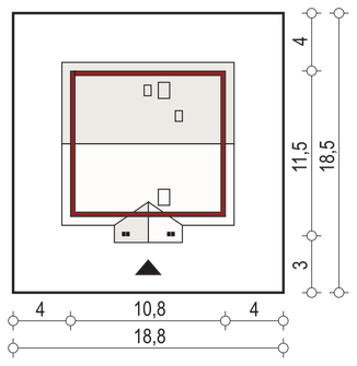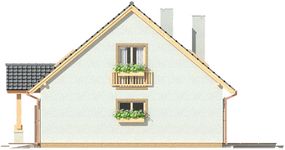 Graficzne opracowanie rzutów poglądowych widocznych na karcie projektu zostało wykonane przez Extradom.pl. Prezentowane przez Extradom.pl wizualizacje wykonane zostały przez autora projektu i należy poczytywać je jedynie za przykład i propozycję wykończenia, wizję architektoniczną autora projektu. Ostateczne wykończenie budynku może nastąpić na wiele sposobów. Szczegółowe rozwiązania zastosowane w oferowanej dokumentacji - w tym również ilość, lokalizacje i wygląd okien, drzwi, kominów - mogą w niewielkim stopniu różnić się od prezentowanej wizualizacji budynku.