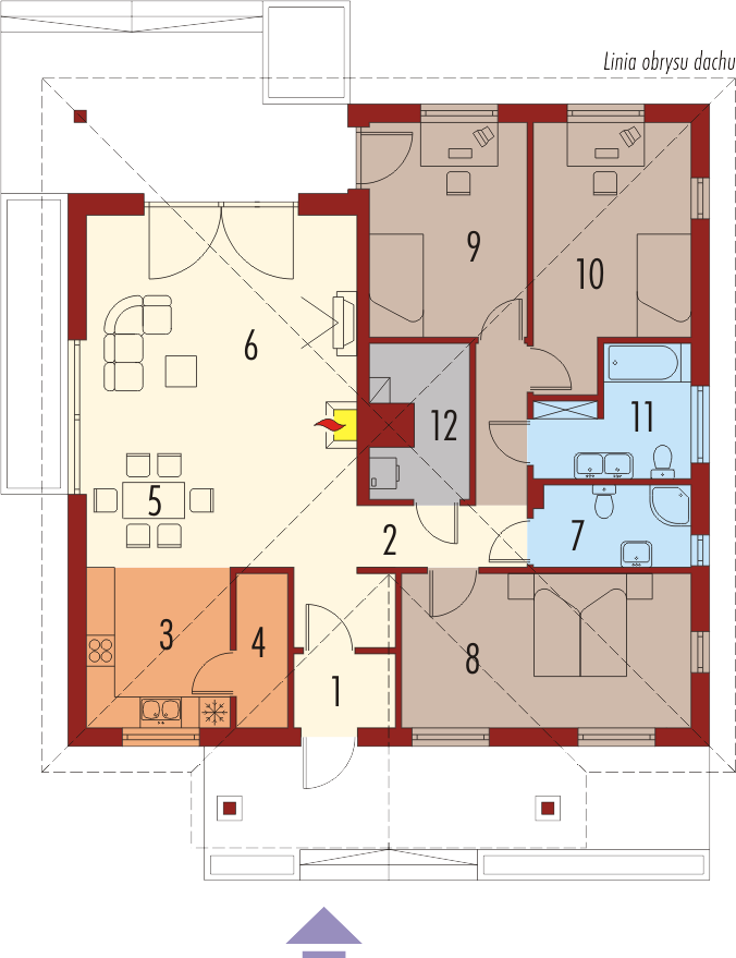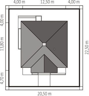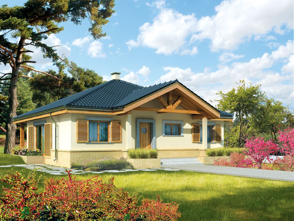 Graficzne opracowanie rzutów poglądowych widocznych na karcie projektu zostało wykonane przez Extradom.pl. Prezentowane przez Extradom.pl wizualizacje wykonane zostały przez autora projektu i należy poczytywać je jedynie za przykład i propozycję wykończenia, wizję architektoniczną autora projektu. Ostateczne wykończenie budynku może nastąpić na wiele sposobów. Szczegółowe rozwiązania zastosowane w oferowanej dokumentacji - w tym również ilość, lokalizacje i wygląd okien, drzwi, kominów - mogą w niewielkim stopniu różnić się od prezentowanej wizualizacji budynku.