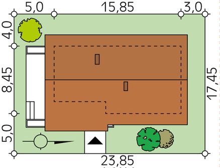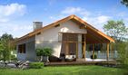Graficzne opracowanie rzutów poglądowych widocznych na karcie projektu zostało wykonane przez Extradom.pl. Prezentowane przez Extradom.pl wizualizacje wykonane zostały przez autora projektu i należy poczytywać je jedynie za przykład i propozycję wykończenia, wizję architektoniczną autora projektu. Ostateczne wykończenie budynku może nastąpić na wiele sposobów. Szczegółowe rozwiązania zastosowane w oferowanej dokumentacji - w tym również ilość, lokalizacje i wygląd okien, drzwi, kominów - mogą w niewielkim stopniu różnić się od prezentowanej wizualizacji budynku.