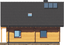 Wysokość ścianki kolankowej: 1.14 m. Strop: drewniany. Pokrycie dachu: dachówka gontopodobna Gerard Corona. Ściany zewnętrzne: płazy drewniane + wełna mineralna + deska. Ściany wewnętrzne: płazy drewniane. Typ ogrzewania: kocioł gazowy lub kocioł na paliwo stałe. Instalacje dodatkowe: instalacja solarna.